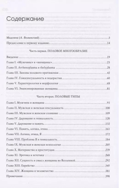 «Пол и характер» Отто Вейнингера (1880–1903) — знаменитое философско-психологическое исследование, создатель которого сломал все ранее существовавшие гендерные стереотипы и задался вопросом, какое же место занимают в мироздании мужчина и женщина. Австрийский философ пришел к выводу, что вопрос этот касается прежде всего каждого отдельного человека. Ему открылась бисексуальность человеческого существа как физиологически заданное природой свойство и, что еще более важно, норма психики: все особенности мужского пола, хотя и в слабом, едва развитом состоянии, можно найти и у женского; и наоборот, признаки женщины в своей совокупности содержатся в мужчине, хотя и в очень неоформленном виде. Была выделена одна из базовых структур психики — единство мужского и женского в ней. И это задолго до архетипов Юнга, до работ по гендерной проблематике, до фундаментальных открытий биологии конца второго тысячелетия.