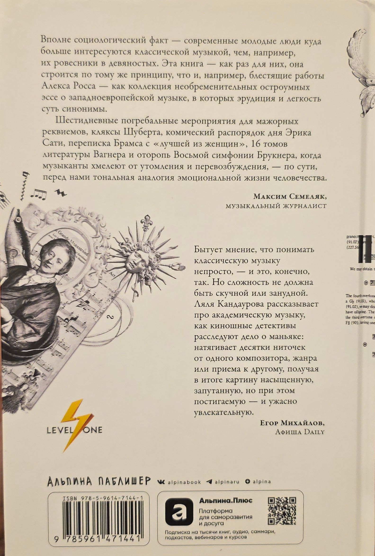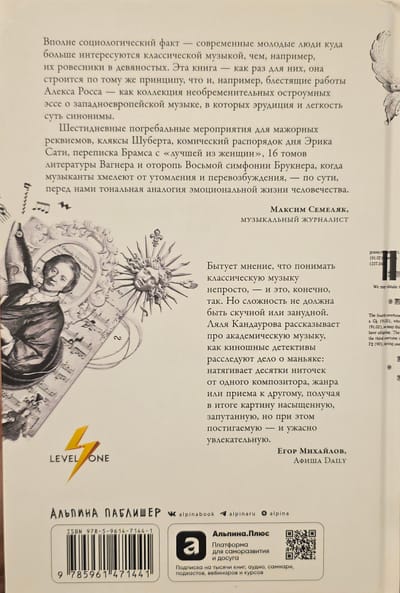 Слушать музыку — это самое интересное, что есть на свете. Вы убедитесь в этом, читая книгу музыкального журналиста и популярного лектора Ляли Кандауровой. Вместо скучного и сухого перечисления фактов перед вами настоящий абонемент на концерт: автор рассказывает о 600-летней истории музыки так, что незнакомые произведения становятся близкими, а знакомые — приносят еще больше удовольствия. Вы сможете использовать QR-коды для прослушивания мелодий, о которых идет речь, чтобы текст ожил, заиграл и раскрылся совершенно по-другому.