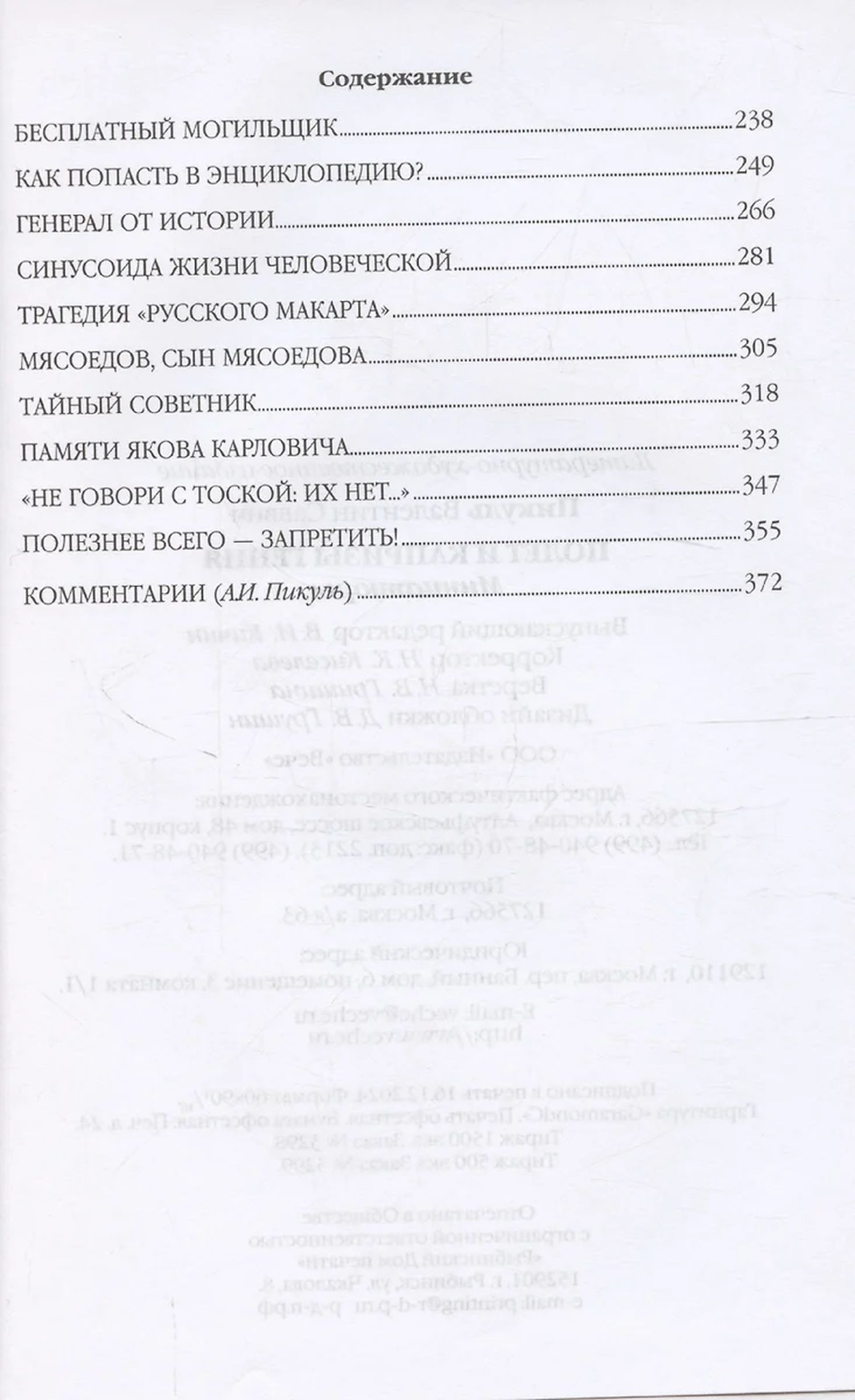 Исторические миниатюры Валентина Пикуля — уникальное явление в современной отечественной литературе, ярко демонстрирующее непревзойденный талант писателя. Каждая из миниатюр, по словам автора, «тоже исторический роман, только спрессованный до малого количества». Миниатюры, включенные в настоящее издание, представляют собой галерею портретов писателей, художников, музыкантов и других творческих личностей, живших в XVI — начале XX века.