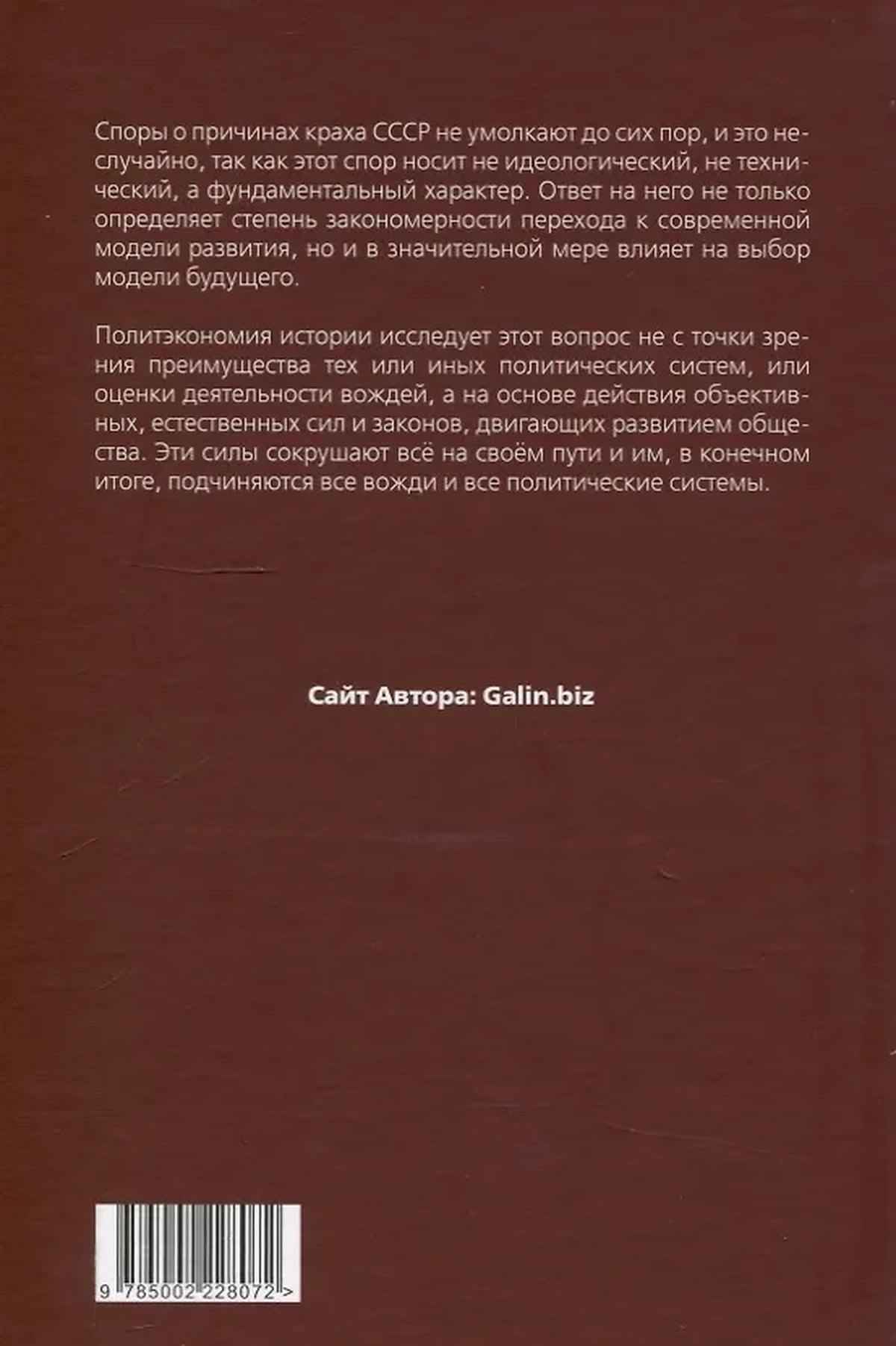 Споры о причинах краха СССР не умолкают до сих пор, и это неслучайно, так как этот спор носит не идеологический, не технический, а фундаментальный характер. Ответ на него не только определяет степень закономерности перехода к современной модели развития, но и в значительной мере влияет на выбор модели будущего. Политэкономия истории исследует этот вопрос не с точки зрения преимущества тех или иных политических систем, или оценки деятельности вождей, а на основе действия объективных, естественных сил и законов, двигающих развитием общества. Эти силы сокрушают всё на своём пути и им, в конечном итоге, подчиняются все вожди и все политические системы.