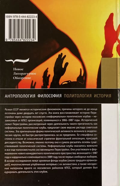 Развал СССР является историческим феноменом, причины которого не до конца осознаны даже двадцать лет спустя. Эта книга восстанавливает историю Перестройки через историю московских «неформальных» политических клубов — независимых от КПСС организаций, появившихся в 1986—1987 годы. Неформальные клубы оказались важными и все еще малоизвестными составляющими Перестройки. Они участвовали в формировании нового конкурентного политического пространства, возникшего с 1987 года и кардинально изменившегося в 1989 году после первых свободных выборов. В основе исследования лежат архивные фонды клубов (около тридцати организаций), многочисленные углубленные интервью с их активистами, а также неизданные материалы одного из московских райкомов КПСС, который должен был курировать деятельность этих клубов.