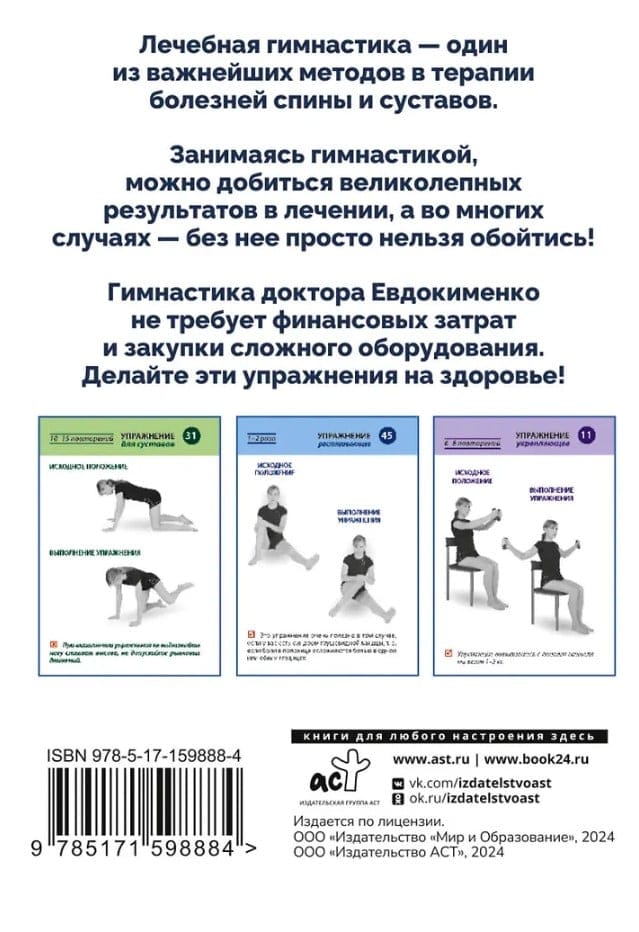 Полный комплекс гимнастики для спины и суставов доктора Евдокименко. 80 карточек
