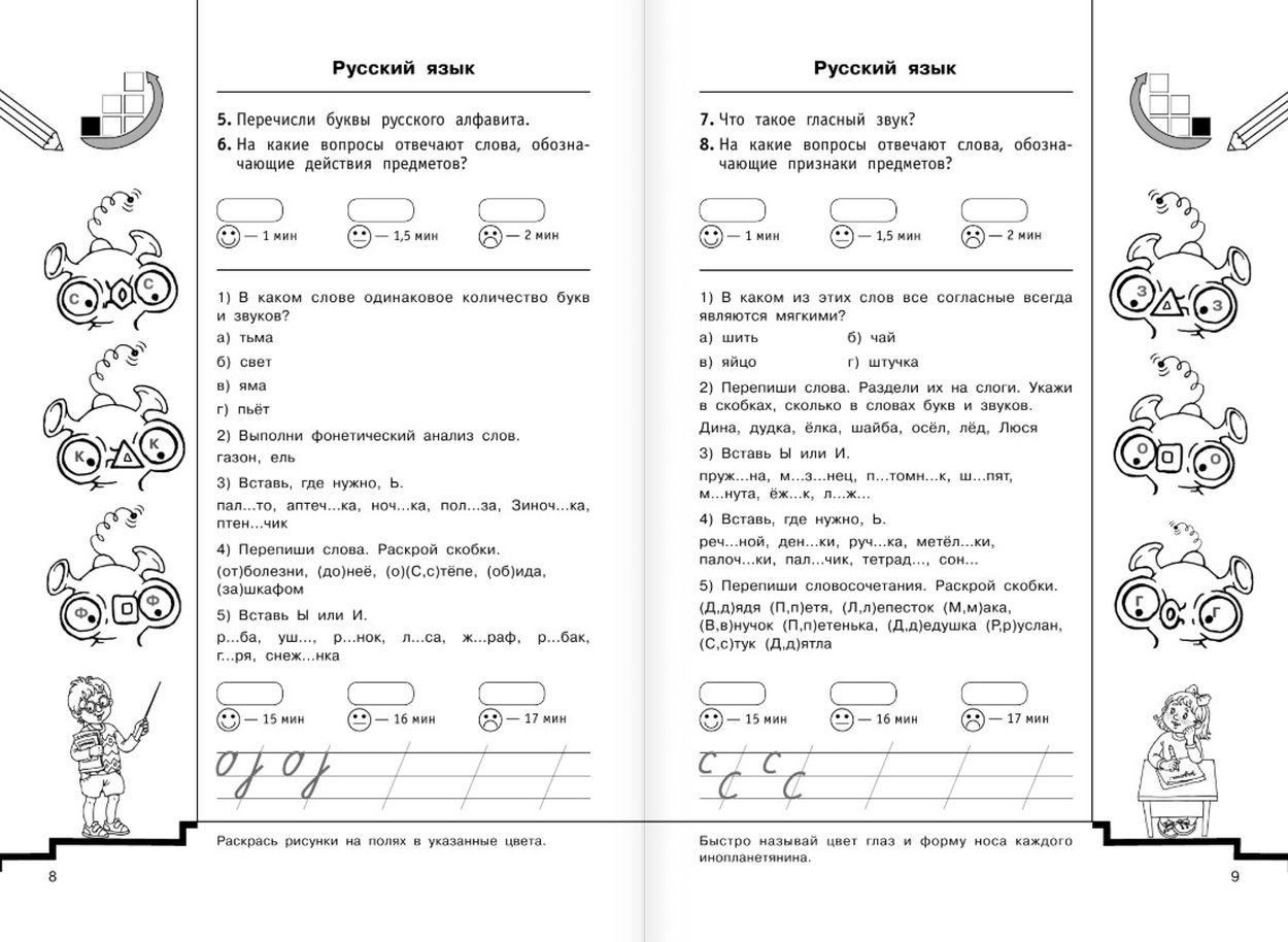 Рекомендуемое время на выполнение заданий позволит узнать, какие упражнения даются ученику легко, а какие вызывают затруднение.