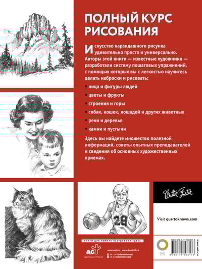 Искусство карандашного рисунка универсально -это и небольшой набросок предмета и сложная композиция, с полным диапазоном тональных оттенков. Художники, работы которых представлены в этой книге, создали свой собственный, особый подход к рисунку, отраженный в многочисленных и универсальных уроках. Авторы научат вас как нарисовать натюрморт, животных, пейзаж и портрет. Следуя инструкциям и описаниям, представленным в этой книге, вы обретете так необходимое вам вдохновение.