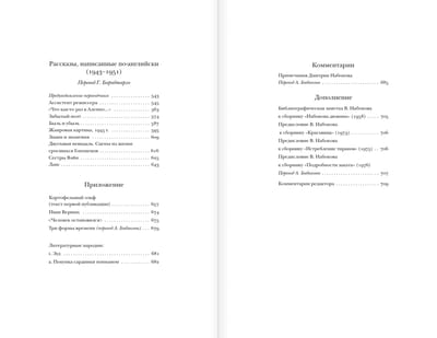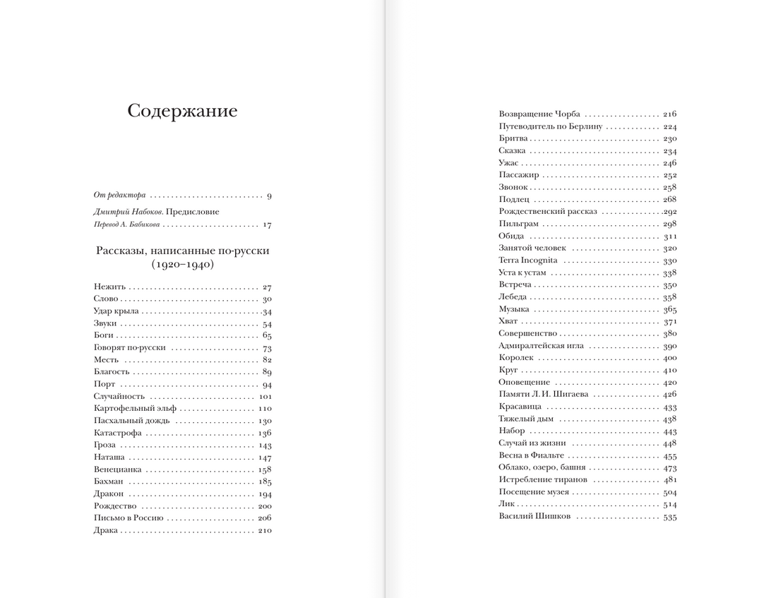 Английское собрание короткой прозы Владимира Набокова (1899–1977), выпущенное сыном писателя в 1995 году, хорошо известно на Западе. Однако на русском языке, на котором Набоков написал большинство своих рассказов, книга долгое время не издавалась. Благодаря многолетней работе исследователей составленный Дмитрием Набоковым том пополнялся новыми произведениями, в результате чего к 2008 году под одной обложкой удалось собрать свыше шестидесяти рассказов, написанных Набоковым в 1920–1951 годах в европейской эмиграции и в Америке. Кроме известных произведений, в настоящем полном собрании рассказов представлены редкие ранние сочинения, а также предисловия и заметки Набокова из английских сборников. В Приложении публикуются сочинения, не входившие в предыдущие сборники рассказов. Издание снабжено предисловием и примечаниями Д. Набокова, значительный свод сведений читатель найдет также в комментариях редактора и составителя сборника Андрея Бабикова. Английские рассказы печатаются в переводе Геннадия Барабтарло, подготовленном при участии Веры Набоковой.