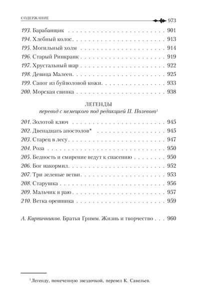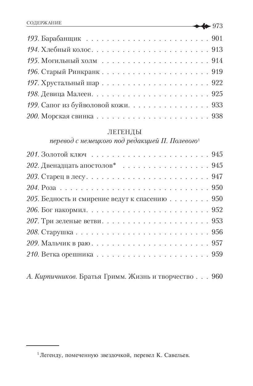 Состав настоящего тома соответствует последнему прижизненному изданию сказок и легенд Якоба и Вильгельма Гримм (Bruder Grimm Die Kinder-und Hausmдrhen, 1857).