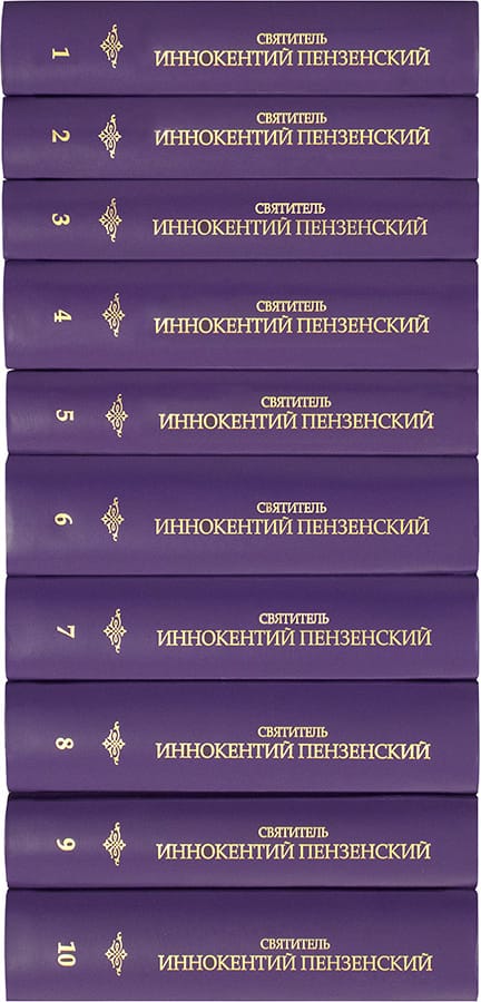 Первые четыре тома настоящего издания составляет «Начертание церковной истории...» – главное и самое объемное творение святителя Иннокентия Пензенского, пятый том включает его богословские статьи, в шестом томе представлены проповеди, письма и стихи. В седьмом и восьмом томах содержатся документы, связанные с угодником Божиим, в двух последних – воспоминания и материалы о святом.
