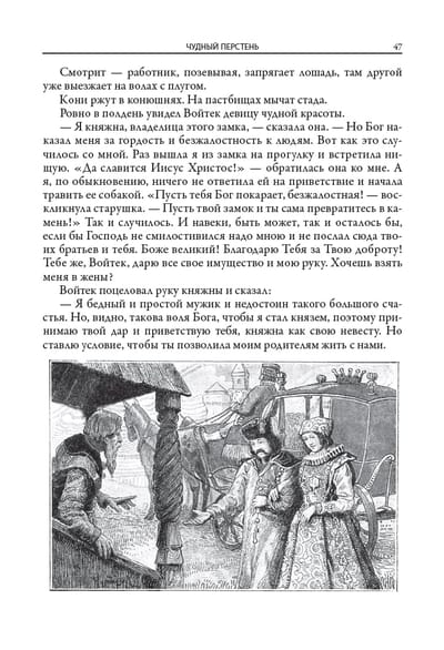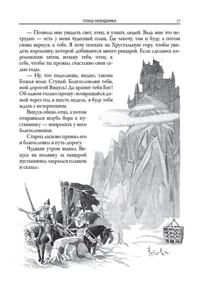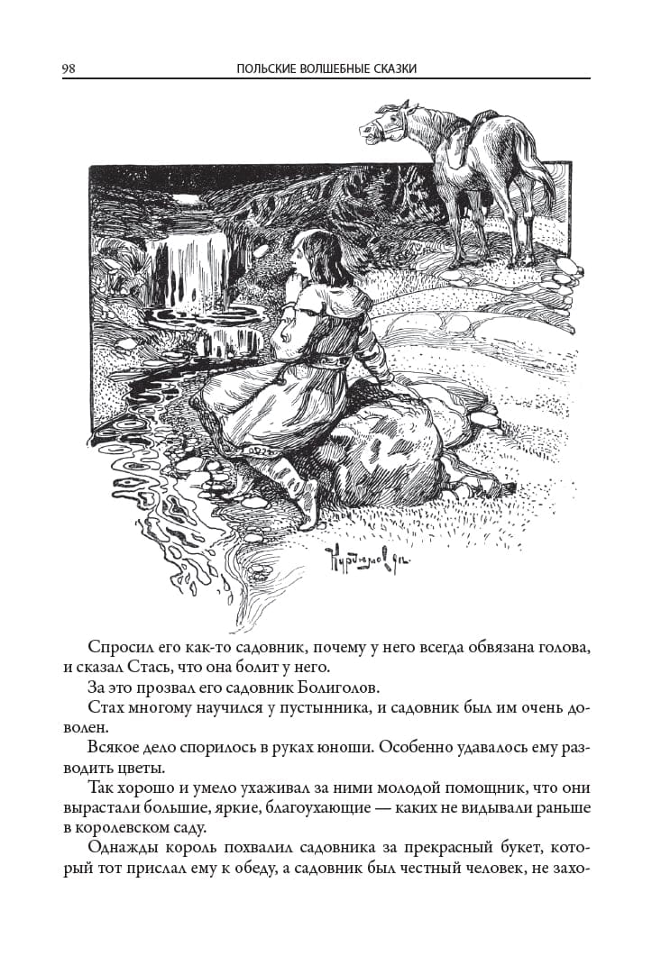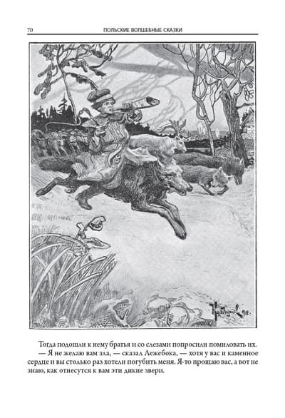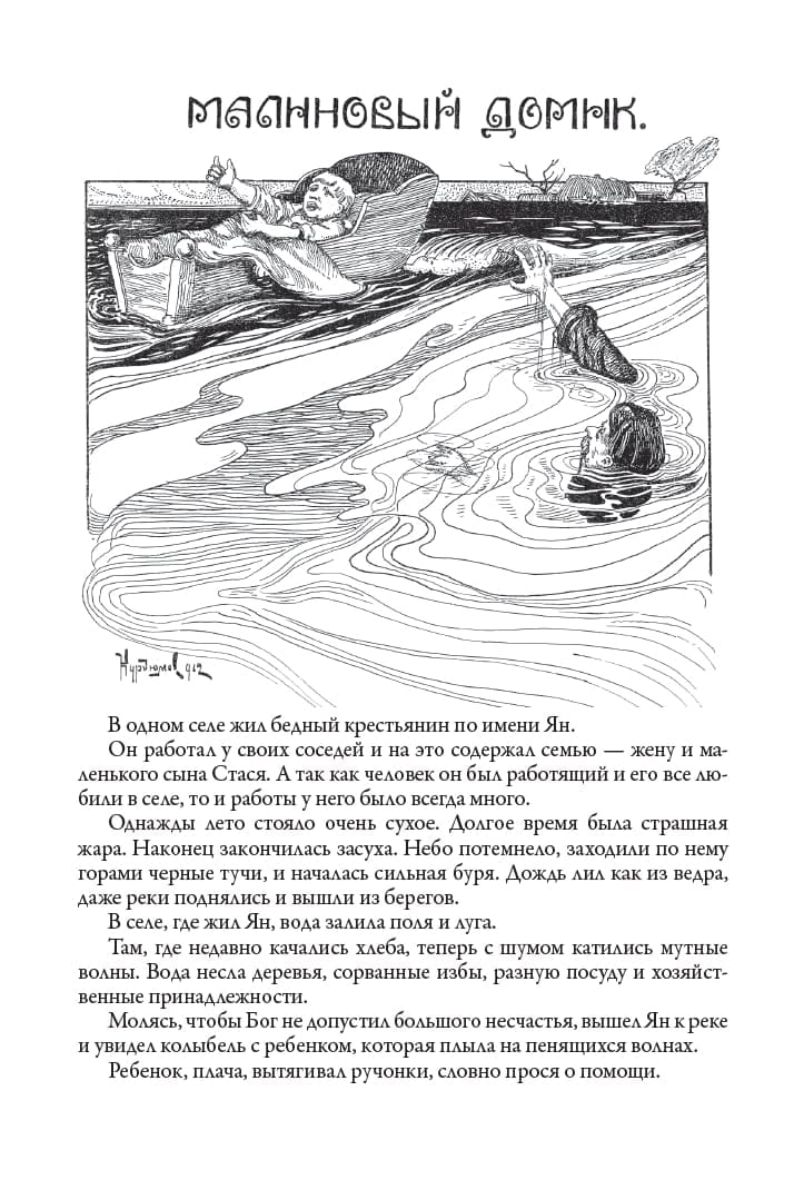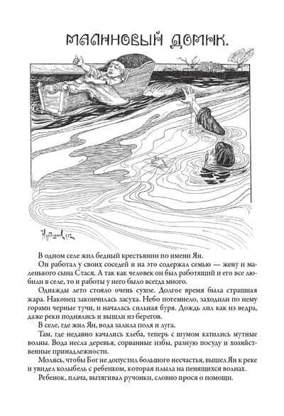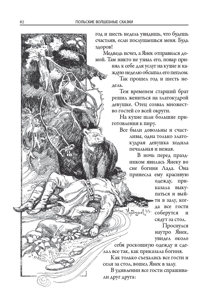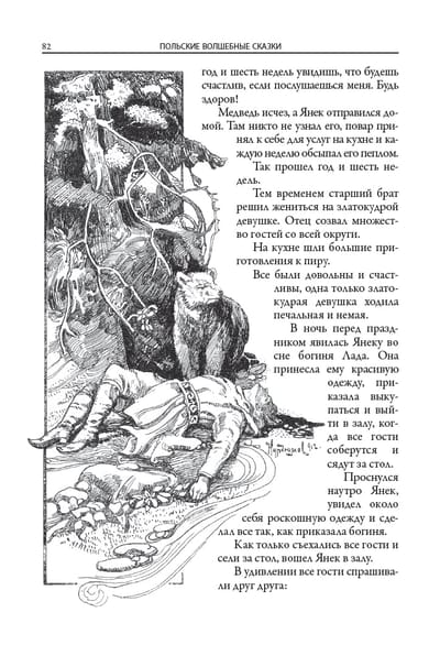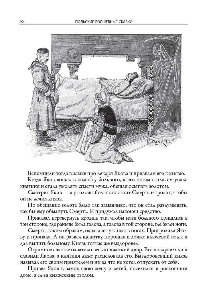 Книга включает восемнадцать польских народных сказок. Некоторые из них напоминают известные русские сказки, другие совершенно своеобразны; есть в сборнике сказки и с мистической подоплекой. Все тексты даны в переводе З. Карабановой. Издание украшают иллюстрации известного русского художника, работавшего на рубеже XIX и XX веков и внесшего заметный вклад в развитие русского модерна, Валерия Николаевича Курдюмова. Важную роль в формировании культуры каждого народа играет его фольклор: былины, саги, сказки. Эта книга знакомит читателей со сказками старой Польши. В них отразились особенности повседневной жизни поляков прошлых веков, их быта, образа мыслей, верований. И конечно же, как и в сказках других народов мира, в этих сказках много волшебного, таинственного, мистического, а порой и пугающего. Сюжеты некоторых польских сказок по своей конструкции напоминаю русские повести или сказки, другие на них вовсе не похожи. К примеру, сюжет сказки «Плащ-невидимка» немного напоминает гоголевского «Вия», а сказка «Чудный перстень» местами похожа на известную историю Шергина, в которой пес и кот помогают своему спасителю. С другой стороны, сюжет сказки «Малиновый домик» совершенно оригинален. Сравнение польских сказок, включенных в этот сборник с уже известными вам сказочными сюжетами - интересное занятие. Оно, безусловно, доставит вам удовольствие. Восемнадцать польских сказок, составивших эту книгу, были впервые напечатаны знаменитым московским издателем Иваном Дмитриевичем Сытиным в 1914 году. Он сделал фантастическую карьеру от подручного в книжной лавке до видного книгоиздателя и владельца крупной сети книжных магазинов и лавок. Иван Дмитриевич старался сделать книги недорогими и привлекательными для читателей. Для этого он привлекал к оформлению своей продукции лучших художников России. С Сытиным сотрудничали такие мэтры живописи, как Илья Ефимович Репин и Иван Яковлевич Билибин. Для иллюстрирования сборника польских сказок Сытин привлек к работе талантливого художника Валерия Николаевича Курдюмова. Его рисунки украшают и это современное издание. Достаточно взглянуть на любую его иллюстрацию, чтобы сразу понять - это работа подлинного мастера. Курдюмов прекрасно владел композицией и техникой штрихового рисунка. С помощью тонких линий он прекрасно передавал мех медведя, складки одежды или игру света и тени на камнях в лесной чаще. В его манере чувствуется влияние и уникального билибинского стили, и модных художественных веяний начала ХХ века. Любопытно отметить, что Курдюмов был основателем знаменитого московского дома-коммуны в Лефортове, где проживали и занимались живописью многие художники самых различных направлений. В 1905 году там поселили Казимир Малевич, которого связывали с Курдюмовым теплые дружеские отношения. К сожалению, в истории сохранилось мало сведений о жизни В. Н. Курдюмова; лучшим памятником художника остаются его неподвластные времени рисунки.