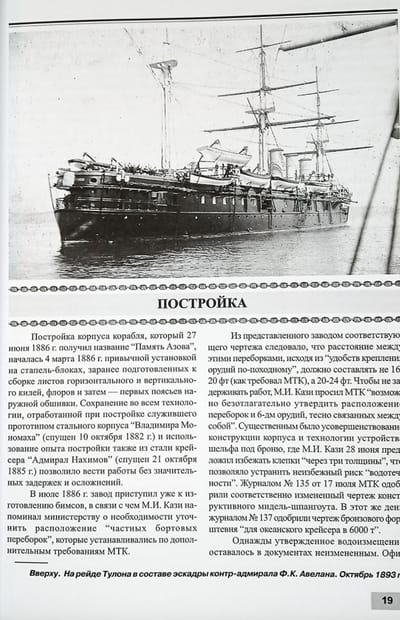 «Память Азова» – первый крейсер Русского Императорского флота, в основу проекта которого легли не английские прототипы, а французские. В 1885 году французы смогли создать проект быстроходного бронепалубного крейсера! А в России посчитали, что смогут создать с такими же размерами быстроходный, только броненосный и лучше вооружённый крейсер!