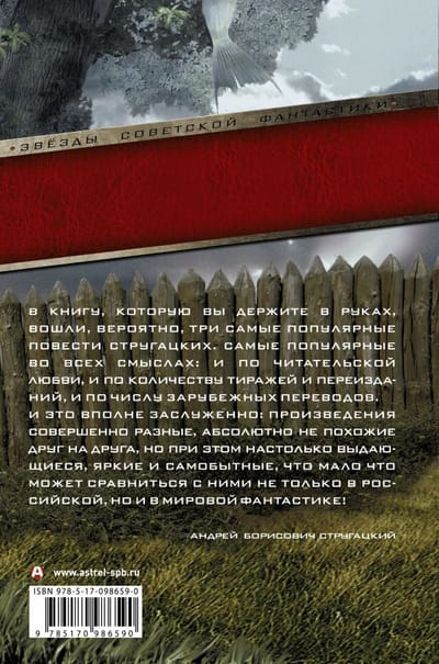 В книгу, которую вы держите в руках, вошли, вероятно, три самые популярные повести Стругацких. Самые популярные во всех смыслах: и по читательской любви, и по количеству тиражей и переизданий, и по числу зарубежных переводов. И это вполне заслуженно: произведения совершенно разные, абсолютно не похожие друг на друга, но при этом настолько выдающиеся, яркие и самобытные, что мало что может сравниться с ними не только в российской, но и в мировой фантастике!