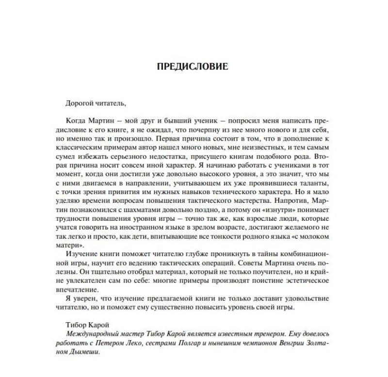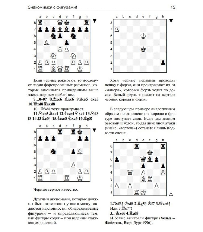 Эта книга, получившая признание в Европе, наконец приходит к русскоязычному читателю. Обращаясь к шахматистам массовых разрядов, автор учит не только наносить эффективные удары в созревших для этого позициях, но и заблаговременно распознавать мотивы и создавать предпосылки для проведения комбинаций. Примеры подобраны с отличным вкусом и в подавляющем большинстве не относятся к числу тех, которые кочуют из учебника в учебник. Большое количество диаграмм и краткость разбираемых фрагментов позволяют легко читать книгу без доски, что также способствует развитию комбинационного зрения.  Для широкого круга любителей шахмат.
