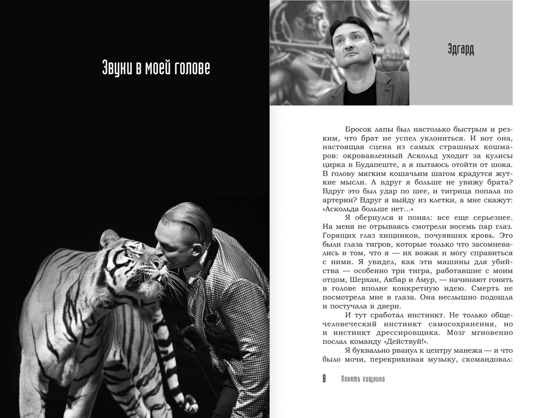 На манеже с тиграми и львами они не «хозяева», не надсмотрщики, не укротители. Прежде всего, они — вожаки этой стаи. Лидеры, которые знают психологию хищников и показывают, что человек может общаться с этими животными вот так — на расстоянии укуса и удара лапой. И тут все просто: либо ты покажешь, что морально сильнее, либо однажды тебя просто разорвут. В прямом смысле этого слова.