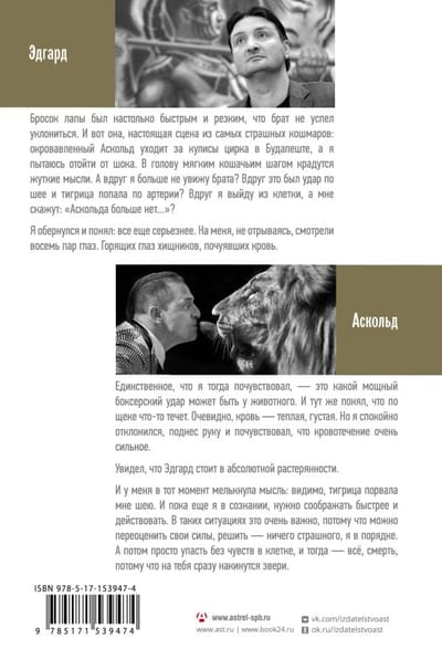 Представители знаменитой цирковой династии, выдающиеся дрессировщики, основатели и руководители «Цирка братьев Запашных», Народные артисты РФ Эдгард и Аскольд Запашные давно стали не только знаменитым брендом, но и символом цирковой индустрии России. В своей книге они откровенно и эмоционально рассказывают о детстве «в опилках», первых шагах на арене, успехах и неудачах, учителях и учениках, политике и личной жизни. Об изнанке профессии, в прямом смысле пропитанной потом и кровью, — и великолепных шоу мирового уровня.