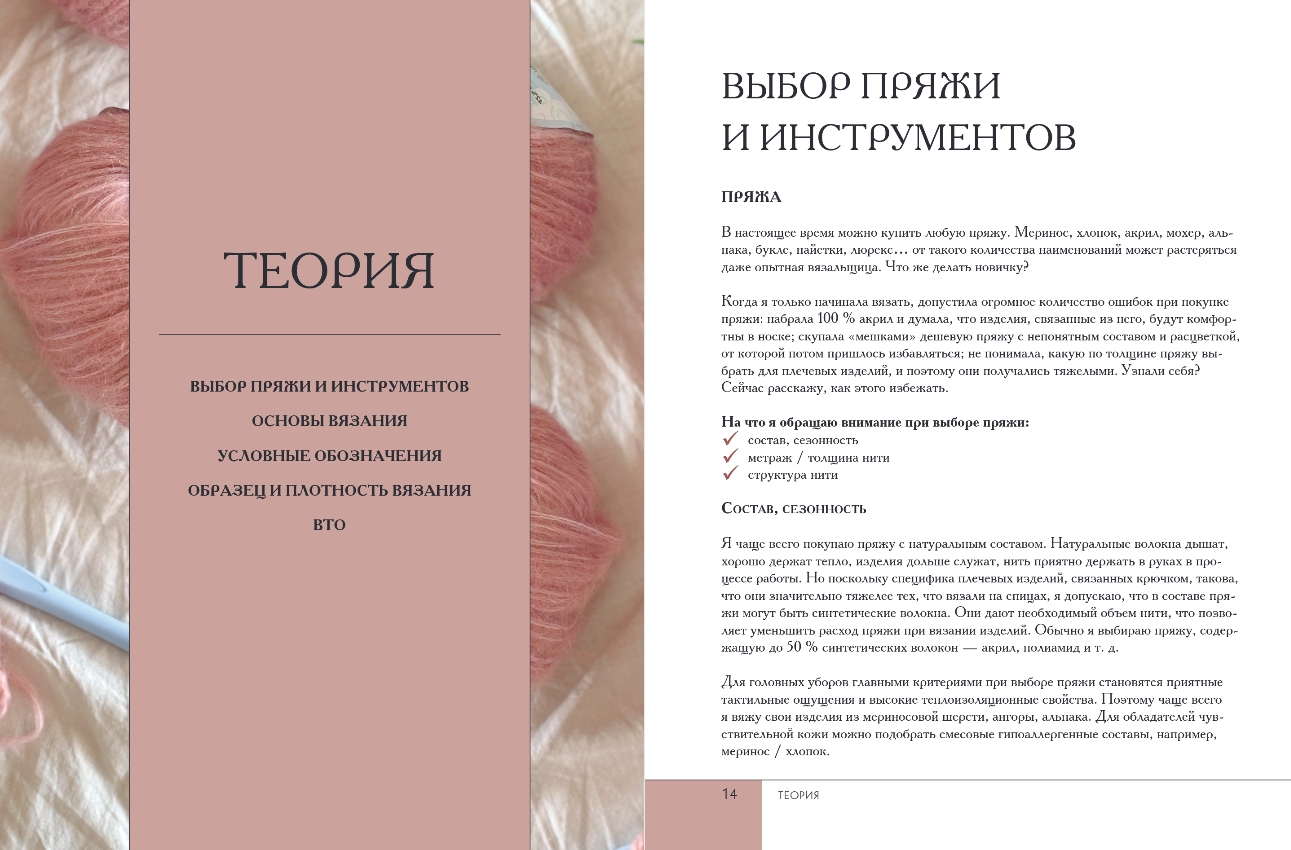 - Советы по выбору пряжи, расчету плотности и самостоятельному проектированию изделий.