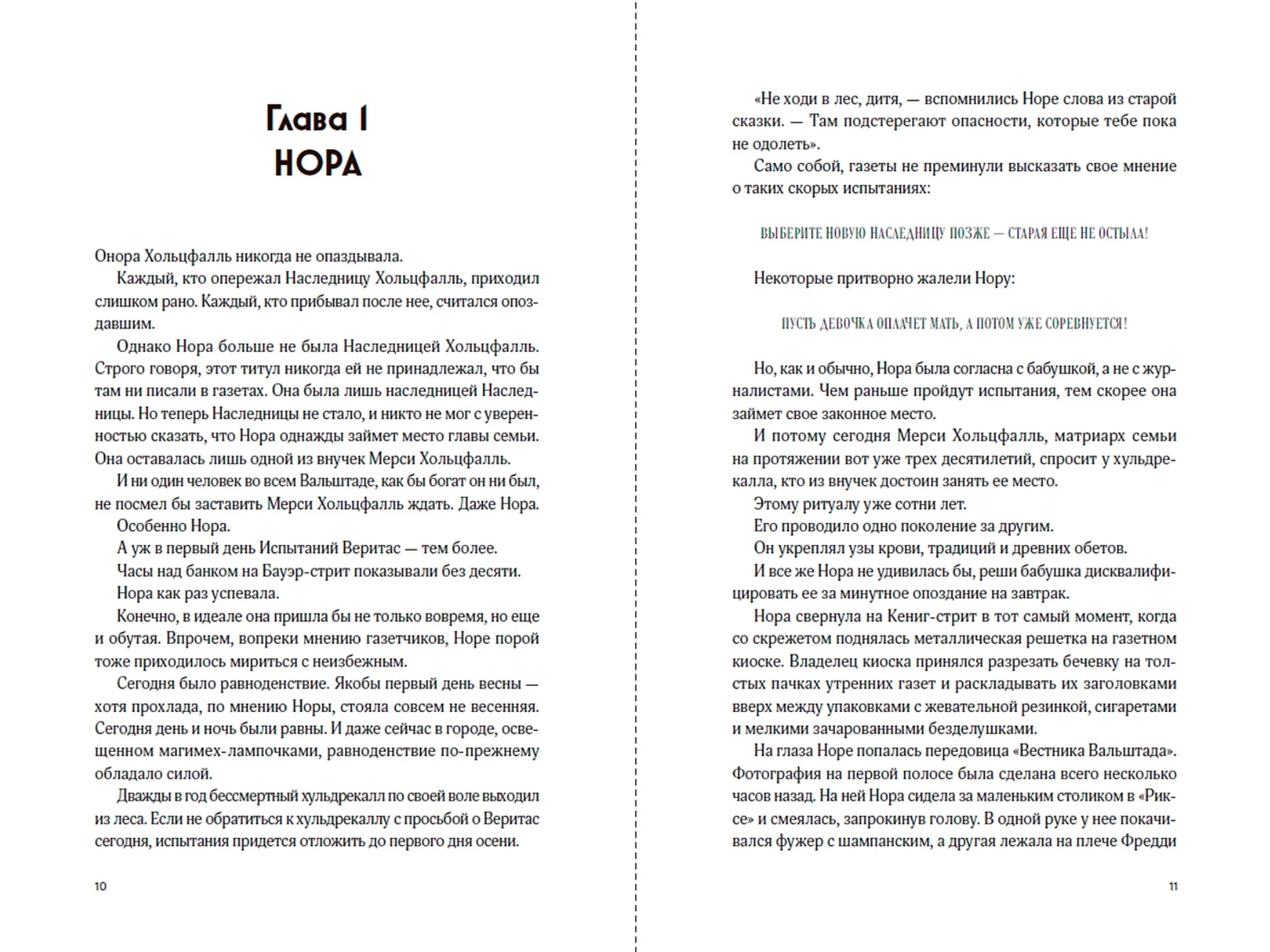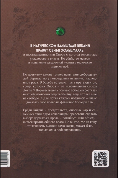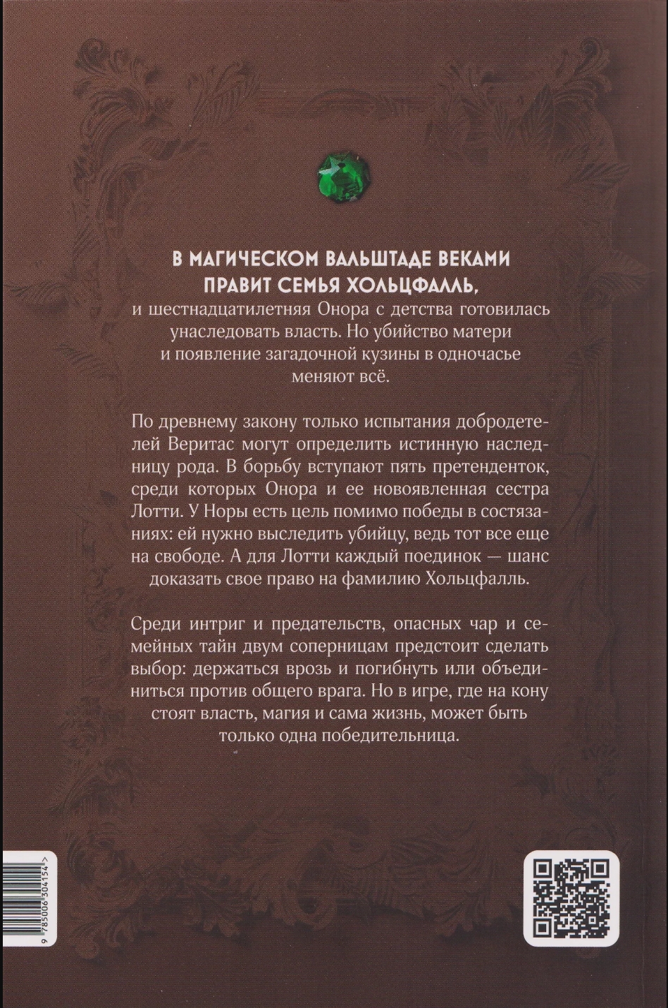 По древнему закону только испытания добродетелей Веритас могут определить истинную наследницу рода. В борьбу вступают пять претенденток, среди которых Онора и ее новоявленная сестра Лотти. У Норы есть цель помимо победы в состязаниях: ей нужно выследить убийцу, ведь тот все еще на свободе. А для Лотти каждый поединок — шанс доказать свое право на фамилию Хольцфалль.