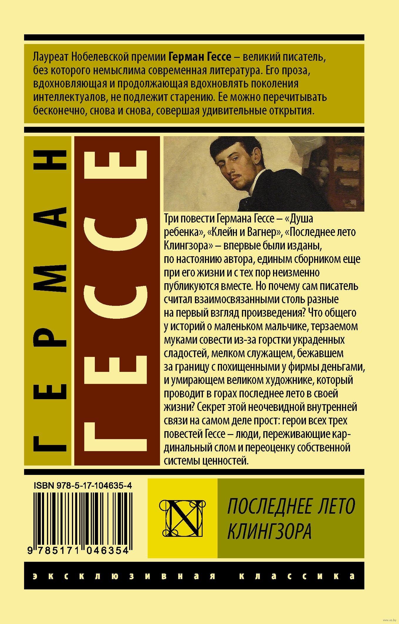 Три повести Германа Гессе — «Душа ребенка», «Клейн и Вагнер», «Последнее лето Клингзора» — впервые были изданы, по настоянию автора, единым сборником еще при его жизни, и с тех пор неизменно публикуются вместе.