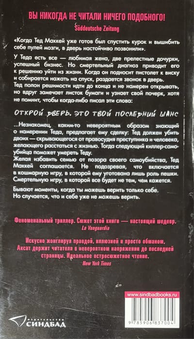 Неизлечимо больной бизнесмен Тед Маккей собирается застрелиться, когда к нему является незнакомец с заманчивым предложением: если Тед убьет двоих - преступника, скрывающегося от правосудия, и невинного человека, который сам хочет расстаться с жизнью, - тогда взамен такой же киллер-самоубийца убьет его самого. Семья Теда будет горевать, но избежит позора... Соглашаясь, Тед Маккей не подозревает, что включается в сумасшедшую смертельную игру, в которой ему отведена лишь роль пешки.