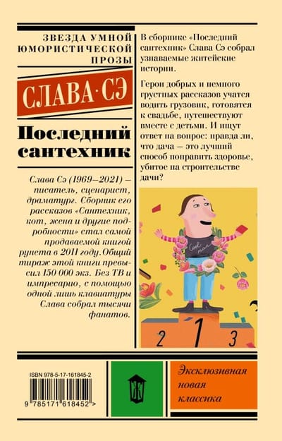 В сборнике «Последний сантехник» Слава Сэ собрал узнаваемые житейские истории. Герои добрых и немного грустных рассказов учатся водить грузовик, готовятся к свадьбе, путешествуют вместе с детьми. И ищут ответ на вопрос: правда ли, что дача – это лучший способ поправить здоровье, убитое на строительстве дачи?