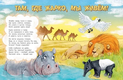 Животные – удивительные создания. Они приспосабливаются к любому климату. Их не пугают сильные бури, ледяная вода, холодные ночи или палящее солнце пустыни. Ксения Валаханович и Ольга Салль в веселых стихах и озорных рисунках рассказали, как живётся зверям и птицам в самых жарких и самых холодных уголках нашей планеты.