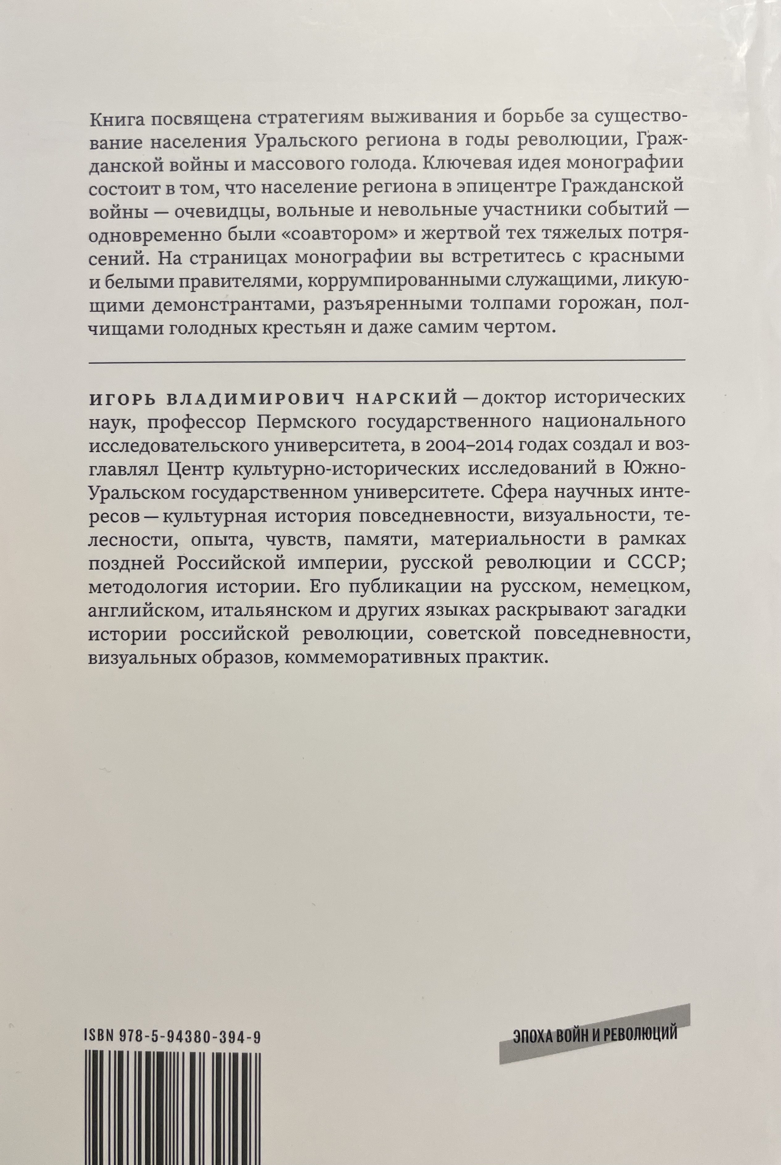 Игорь Владимирович Нарский — доктор исторических наук, профессор Пермского государственного национального исследовательского университета, в 2004–2014 годах создал и возглавлял Центр культурно-исторических исследований в Южно-Уральском государственном университете. Сфера научных интересов — культурная история повседневности, визуальности, телесности, опыта, чувств, памяти, материальности в рамках поздней Российской империи, русской революции и СССР; методология истории. Его публикации на русском, немецком, английском, итальянском и других языках раскрывают загадки истории российской революции, советской повседневности, визуальных образов, коммеморативных практик.