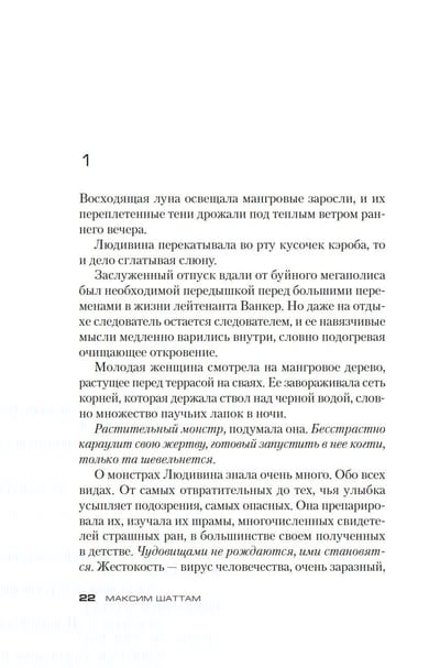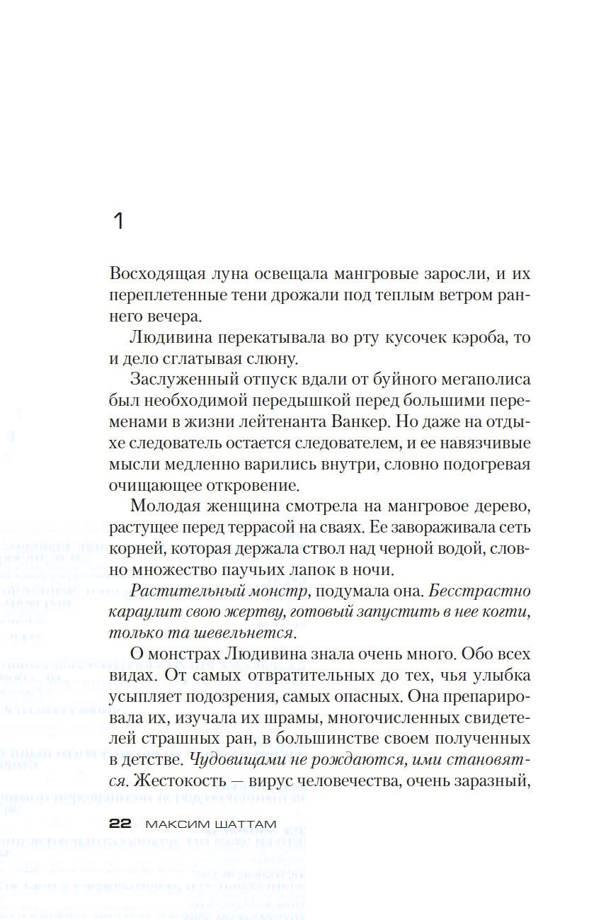 В давно закрытых и забытых шахтах найдены массовые захоронения: десятки женщин, изнасилованных и убитых, пролежали там долгие годы, и, похоже, убийца — тотчас получивший угрюмое прозвище Харон — орудовал многие десятилетия назад. Между тем женщин продолжают похищать и убивать прямо сейчас — и, судя по их изуродованным трупам, это дело рук того же неумолимого хищника, хотя в таком случае ему уже под сотню лет. Но как такое возможно? Значит ли это, что зло длится, самовоспроизводится, не умирает даже со смертью человека? Максим Шаттам — французская звезда триллера, обладатель престижных премий, автор романов, расходящихся многомиллионными тиражами во Франции и ставших бестселлерами еще в двух десятках стран. В его новом романе, отчасти вдохновленном «Молчанием ягнят» одного из его кумиров Томаса Харриса, бывшая сотрудница парижского отдела расследований Людивина Ванкер, перейдя на работу в департамент поведенческих наук, вместе с новыми и бывшими коллегами вновь сталкивается с тем, что понимает лучше всего на свете. С тем, что зловеще маячит прямо за гранью человечности, только и ждет разрешения войти. Хищник не дремлет — он замер, затаился и наблюдает. В своем постоянстве он незыблем. Он решает, достойна ли ты выжить.