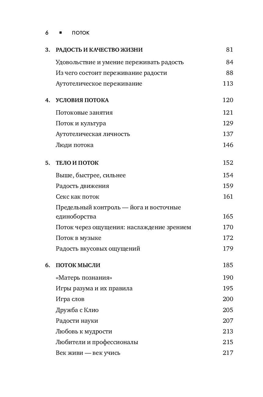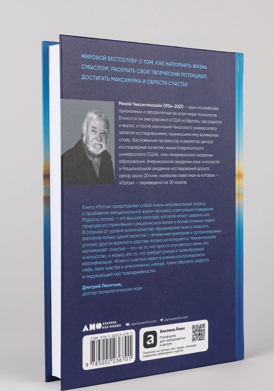 В своей культовой книге выдающийся ученый Михай Чиксентмихайи представляет совершенно новый подход к теме счастья. Счастье для него сродни вдохновению, а состояние, когда человек полностью поглощен интересным делом, в котором максимально реализует свой потенциал, Чиксентмихайи называет потоком. Автор анализирует это плодотворное состояние на примере представителей самых разных профессий и обнаруживает, что эмоциональный подъем, который испытывают художники, артисты, музыканты, доступен в любом деле. Более того, к нему надо стремиться — и не только в целенаправленной деятельности, но и в отношениях, в дружбе, в любви. На вопрос, как этому научиться, и отвечает книга.