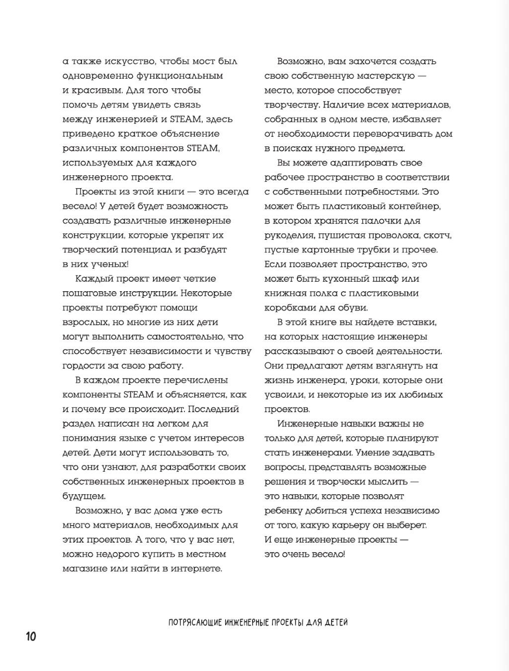 Каждый проект оснащен подробной инструкцией, списком необходимых материалов, а также научным объяснением в конце. Также вы узнаете о том, как плотно инженерия (E) связана с остальными компонентами STEAM: с наукой (S), технологиями (T), искусством (A) и математикой (M). А еще помимо обучающей функции, у данных проектов есть и творческая составляющая – украсьте каждое свое творение так, как сами того захотите! В любом случае – скучно не будет!