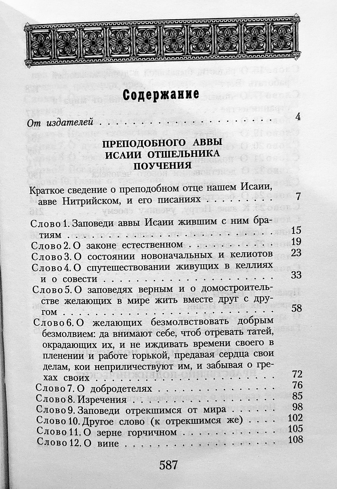 Блаженный Исаия был аввой монастыря и братию свою назидал не только словом, но и делом. Писания его – обильные струи духовной мудрости.