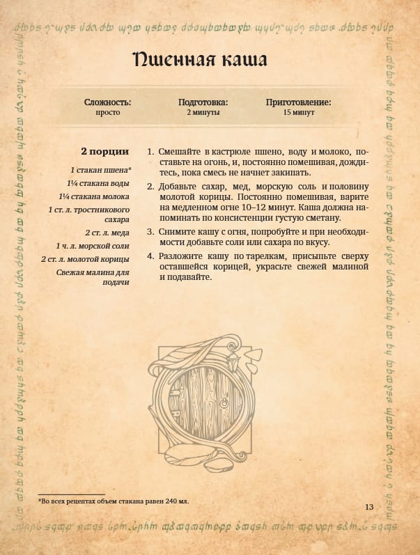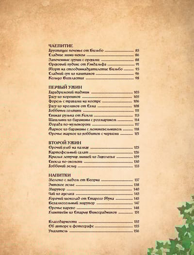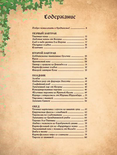 Вас ждет более 60 рецептов, вдохновленных легендарной фэнтези-вселенной Дж. Р. Р. Толкина. Это не только волшебный эльфийский хлеб и рагу, но и знаменитый кекс с тмином от Бильбо, гномья курица с эстрагоном от Турина, хоббитонские тыквенные булочки и другое. А если вы орк и едите совсем другие вещи — не отчаивайтесь, и для вас припасено кое-что: жаркое из хоббитов, хлеб на палках и истинно орочье варево.
