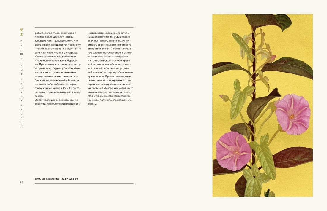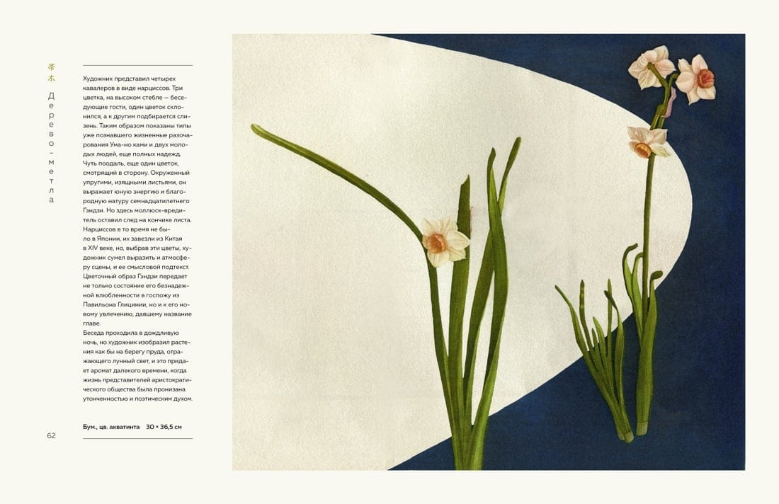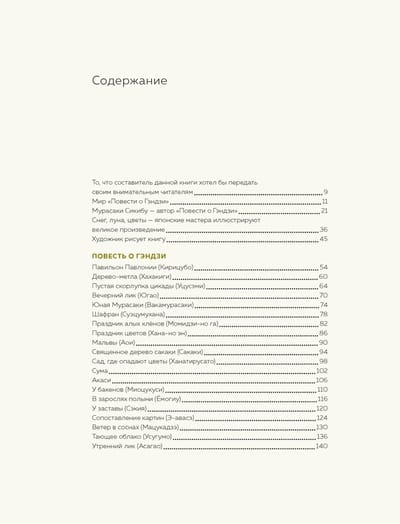 Поэтичная, завораживающая «Повесть о Гэндзи» написана в самом начале XI века в Японии. Принц Гэндзи влюбляется, встречается с друзьями, взрослеет и вот уже его дети ведут беседы о любви и складывают стихи. Удивительный мир японского общества и природы описан, скорее всего, придворной дамой по имени Мурасаки Сикибу. Благодаря своей наблюдательности и таланту, вращаясь в высшем обществе Японии, она сохранила для нас моду, праздники и обычаи эпохи Хэйан; запечатлела тонкости мировосприятия и взаимоотношений между людьми. Герои «Повести о Гэндзи» любят, страдают, слагают стихи, и это удивительным образом запечатлел современный японский художник Хироаки Мияяма. Его уникальные гравюры к бессмертной «Повести о Гэндзи» - подлинное наслаждение для ценителей. Гравюры иллюстрируют великое произведение в такой же мере, как и фрагменты «Повести» иллюстрируют и объясняют изображенное художником. Сочетаясь в пространстве одного издания, они составляют поистине прекрасный союз и великолепную книгу. Комментарии ведущих отечественных искусствоведов придают книге дополнительную научную и культурную ценность.