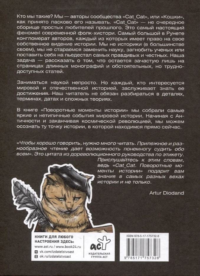 Кто мы такие? Мы – авторы сообщества «Cat_Cat», или «Кошки», как его принято ласково называть. «Cat_Cat» – это не очередное сборище простых любителей прошлого, а самый настоящий феномен современной фолк-хистори. Это крупнейший в Рунете конгломерат авторов, каждый из которых имеет право на собственное видение истории.
