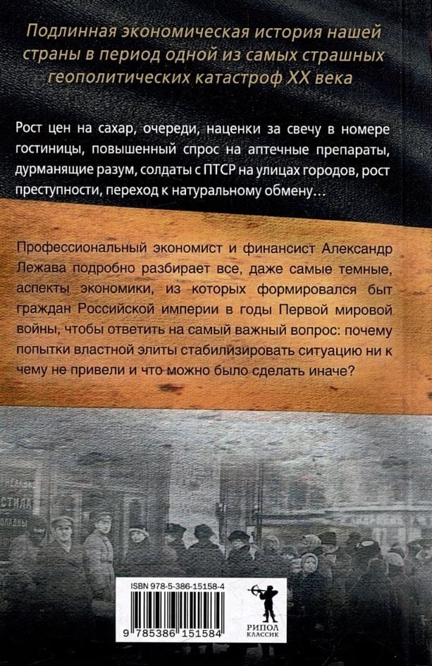 Рост цен на сахар, свечи и спички, сухой закон, инфляция, рост преступности, массовое возвращение с фронта людей, имеющих боевой опыт, выращивание мака и торговля эфиром… — автор подробно рассматривает все, даже самые темные аспекты экономики, которые формировали быт и действительно волновали граждан Российской империи в годы ее конца.