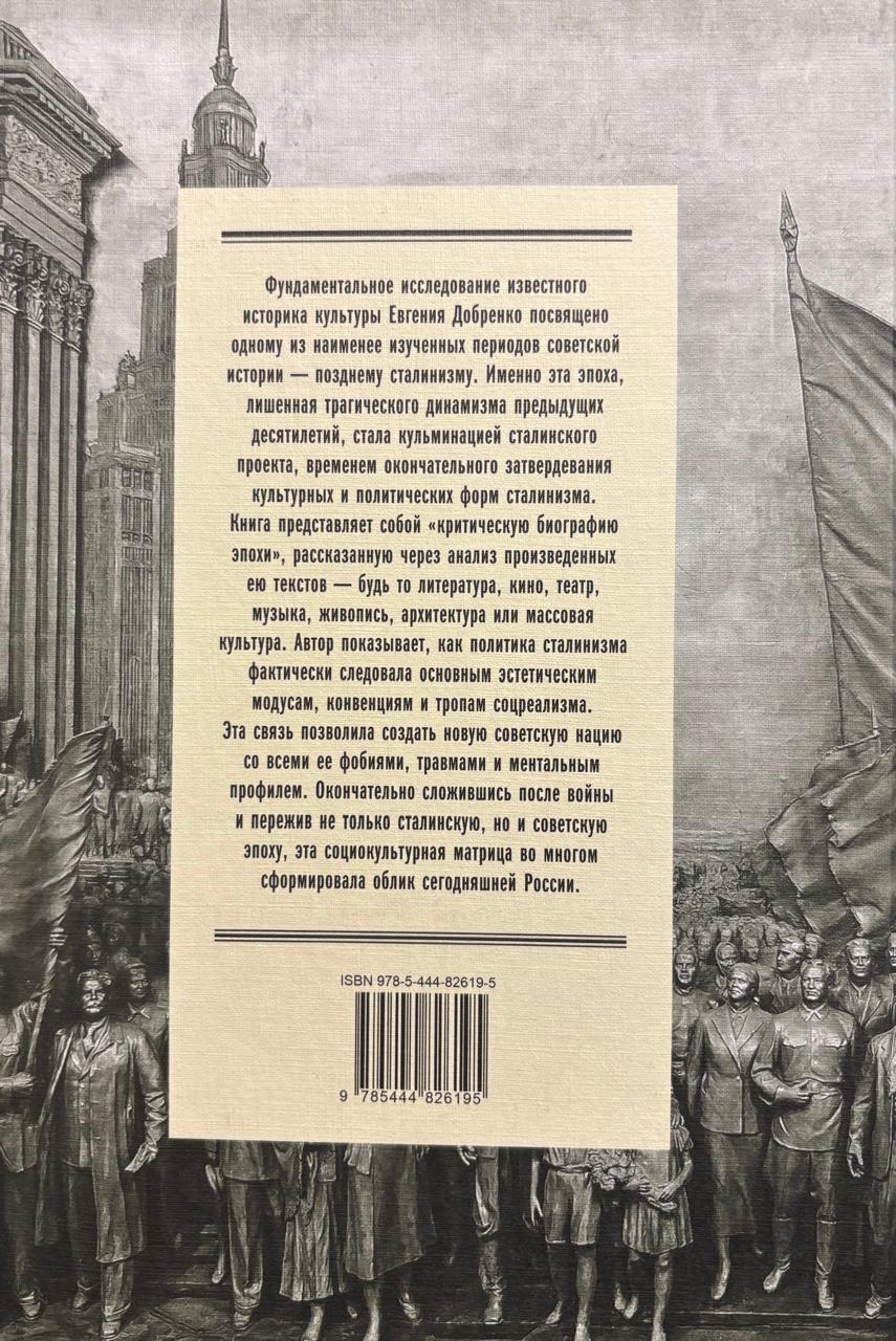 Новое фундаментальное исследование известного историка сталинской культуры Евгения Добренко посвящено одному из наименее изученных периодов советской истории - позднему сталинизму. Рассматривающая связь между послевоенной советской культурной политикой и политической культурой, книга представляет собой культурную и интеллектуальную историю эпохи, рассказанную через анализ произведенных ею культурных текстов - будь то литература, кино, театр, музыка, живопись, архитектура или массовая культура. Обращаясь к основным культурным и политическим вехам послевоенной эпохи, автор показывает, как политика сталинизма фактически следовала основным эстетическим модусам, конвенциям и тропам соцреализма. Эта связь позволила создать новую советскую нацию, основные фобии, травмы, образ врага, культура ресентимента и весь ментальный профиль которой, окончательно сложившись после войны и пережив не только сталинскую, но и советскую эпоху, определили лицо сегодняшней России. Евгений Добренко - филолог, историк культуры, профессор Шеффилдского университета (Великобритания).