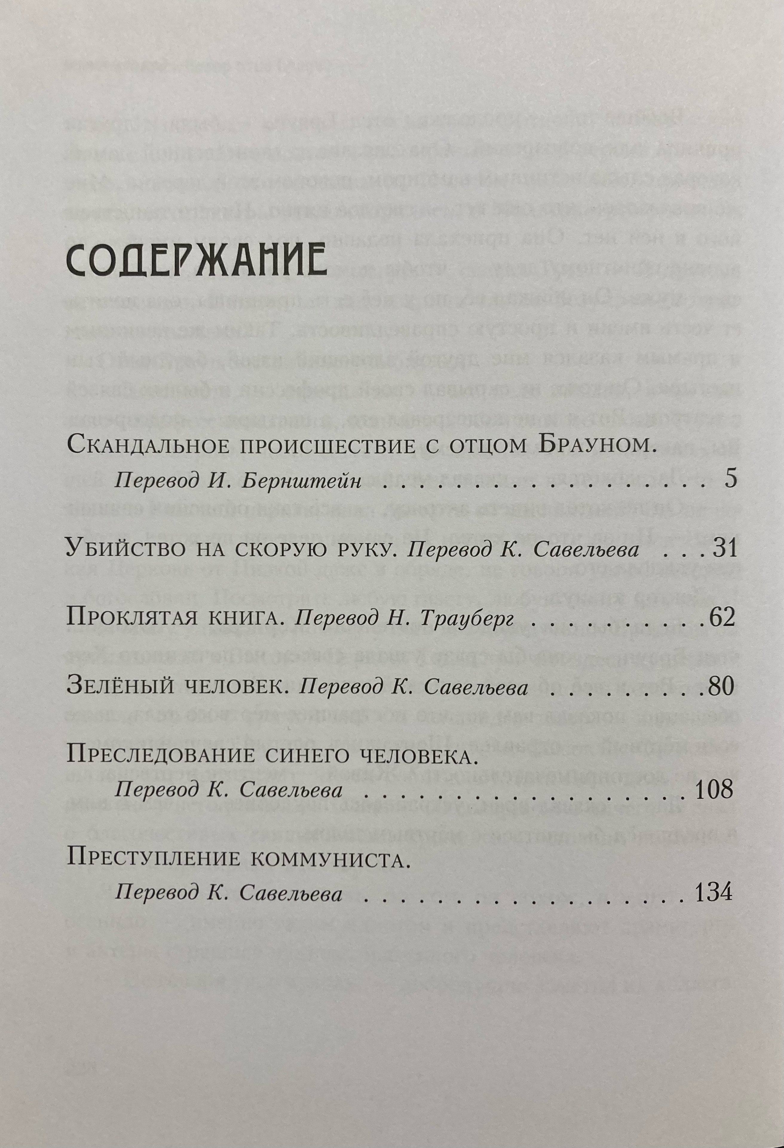 Несколько человек загадочным образом пропали, открыв магическую книгу, — что увидел в ней отец Браун и как сумел раскрыть тайну исчезновений? Поэт совершил романтический побег с прекрасной дамой — чем ему помог маленький священник, и кому на самом деле он помог? Свидетель увидел, как один человек преследует другого, — как понять, кто за кем гнался? Рассеянность отца Брауна подчас вызывает смех — но его неординарность, острый ум и способность находить разгадку самых непостижимых тайн и запутанных преступлений покоряют читателя бесповоротно. А ещё у отца Брауна есть тайное оружие — это безграничная вера в людей и терпимость даже к закоренелым преступникам…
