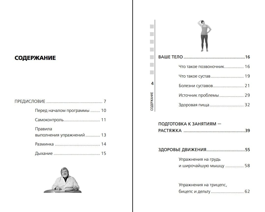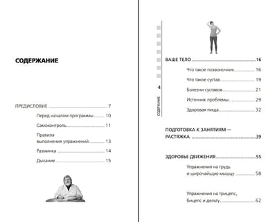 - более 50 упражнений для восстановления подвижности спины и суставов;