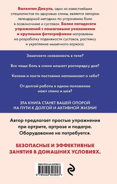 История Валентина Дикуля известна многим. А разработанные им методики могут помочь и вам! Уникальная система упражнений направлена на избавление от боли в спине и суставах и преодоление скованности движений. Регулярные занятия и вдумчивая работа с собственным телом позволяют избавиться от неприятных ощущений, мешающих выполнению ежедневных обязанностей.
