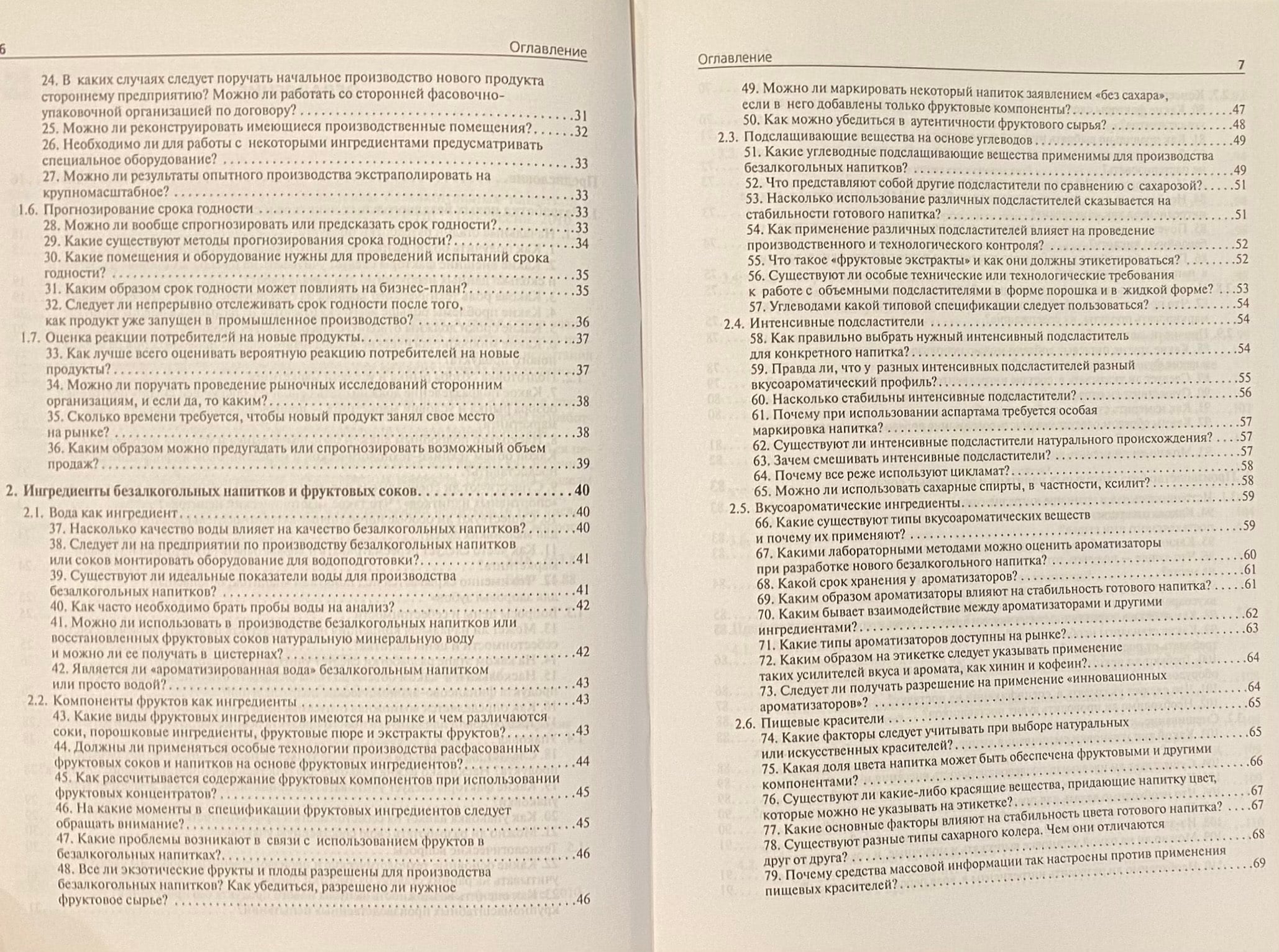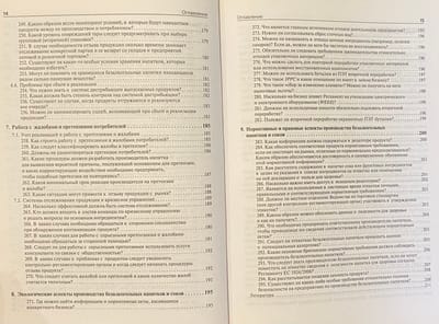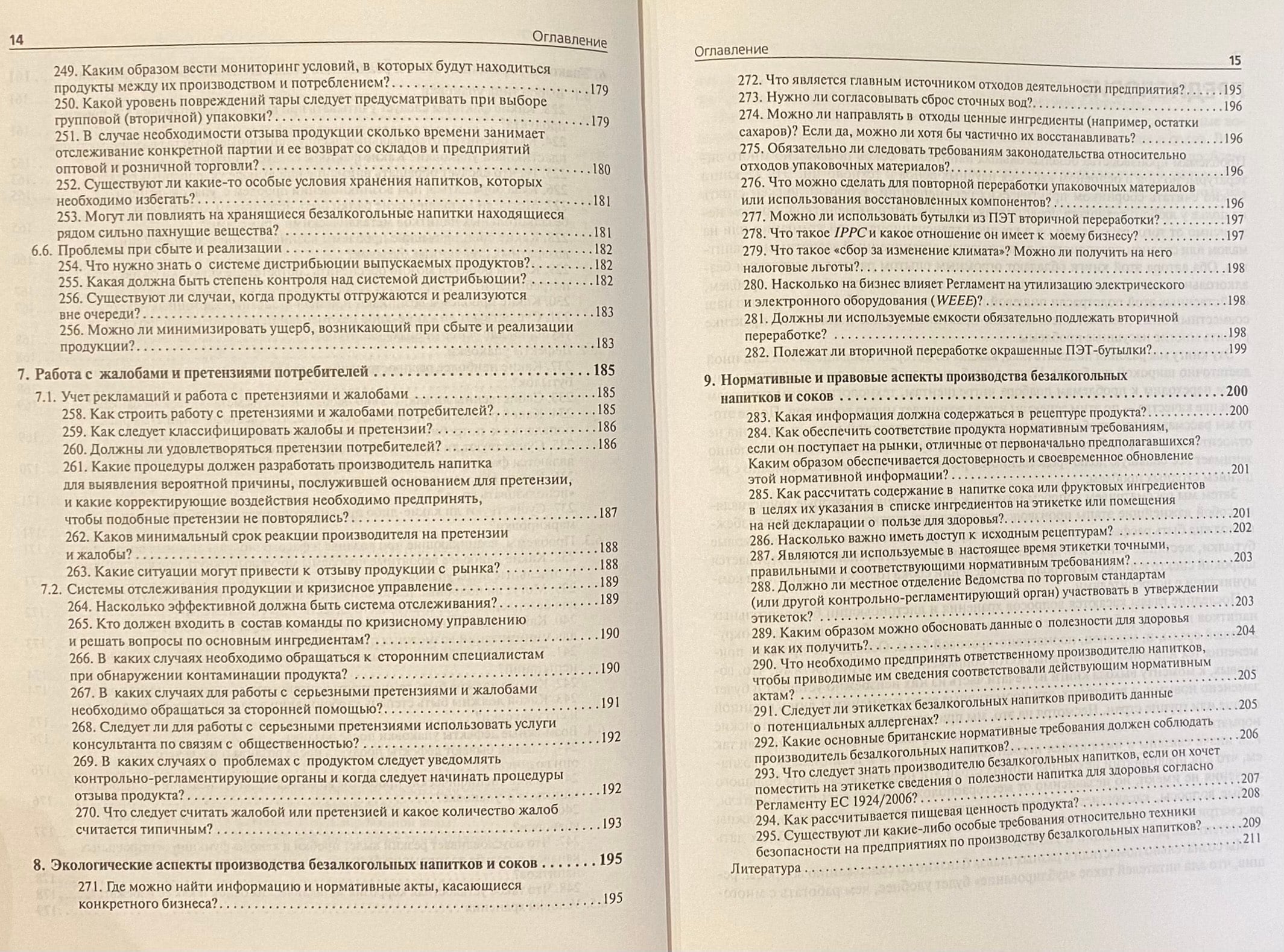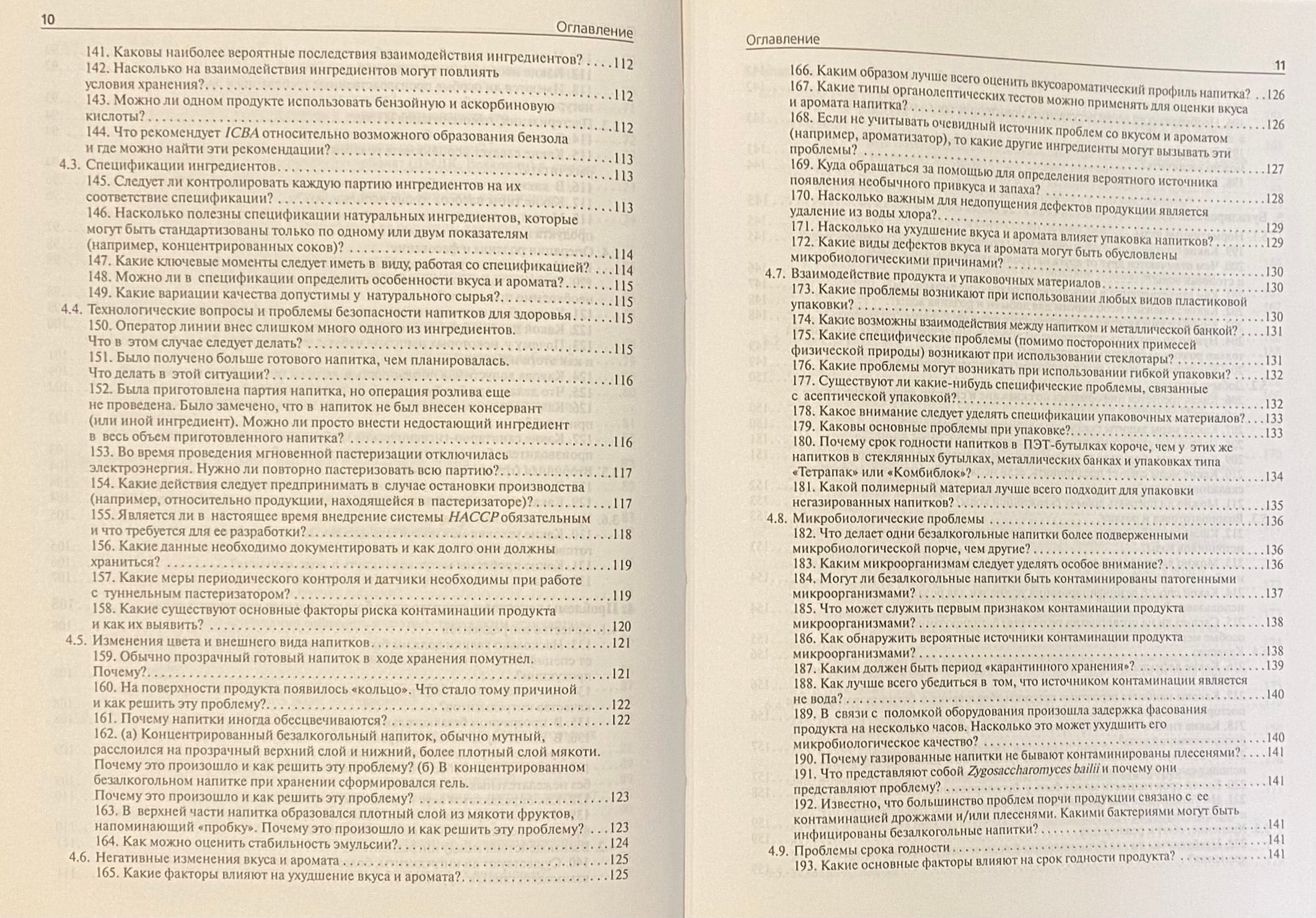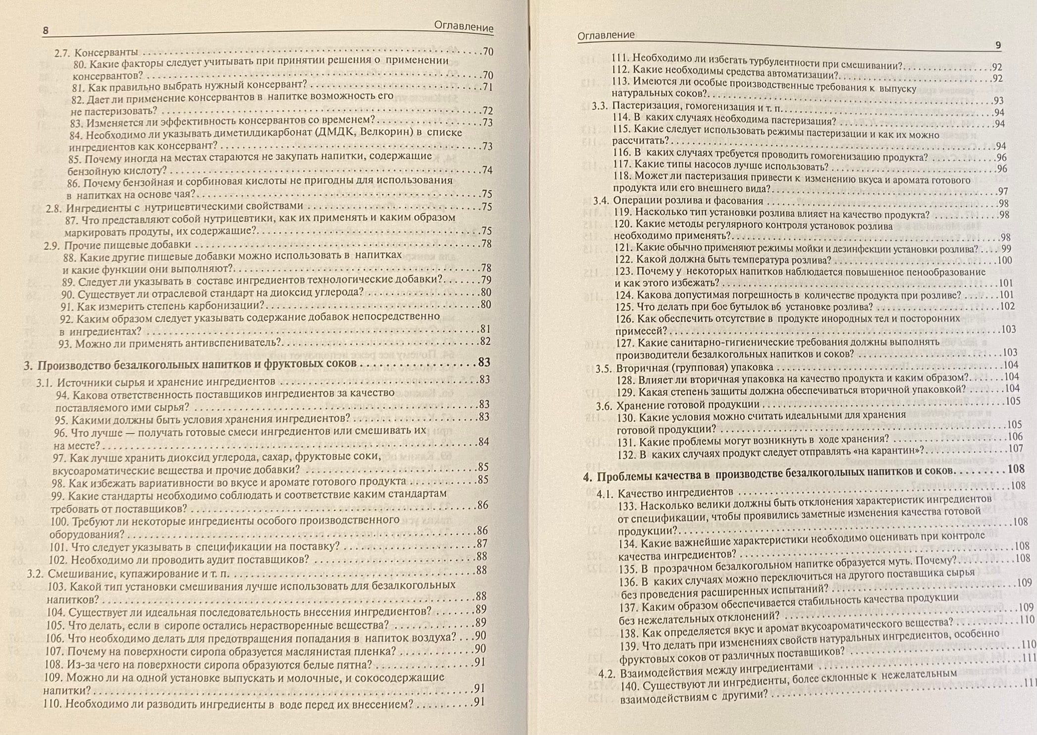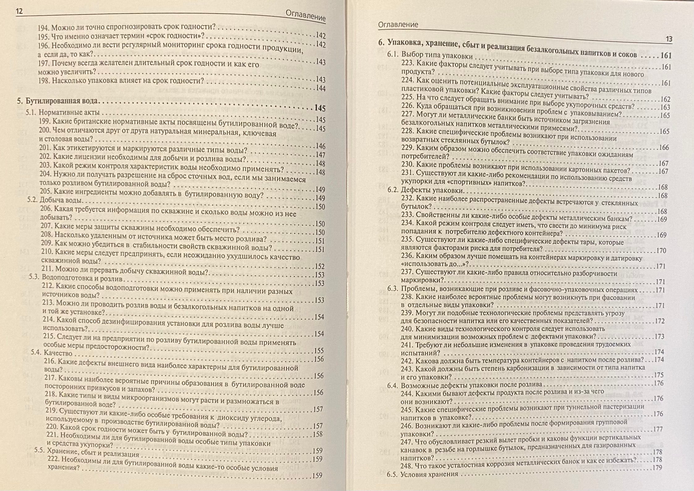 Отдельные разделы посвящены используемым рецептурным ингредиентам, технологиям, качеству продукции, розливу и упаковке, хранению и дистрибьюции напитков, в том числе и бутилированной воды, работе с претензиями и жалобами потребителей, а также вопросам охраны окружающей среды и нормативной базе производства напитков.