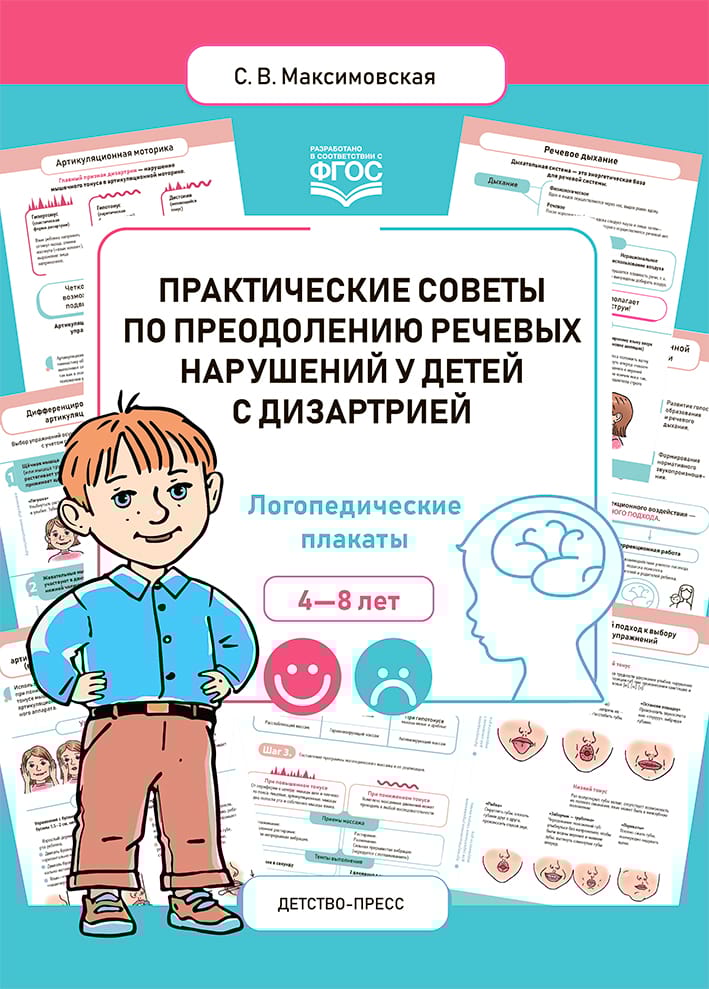 Практические советы по преодолению речевых нарушений у детей с дизартрией. Логопедические плакаты. 4-8 лет