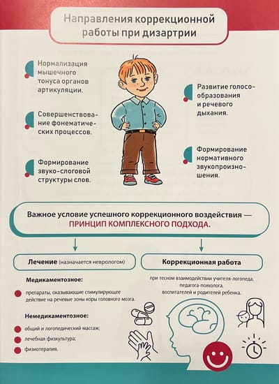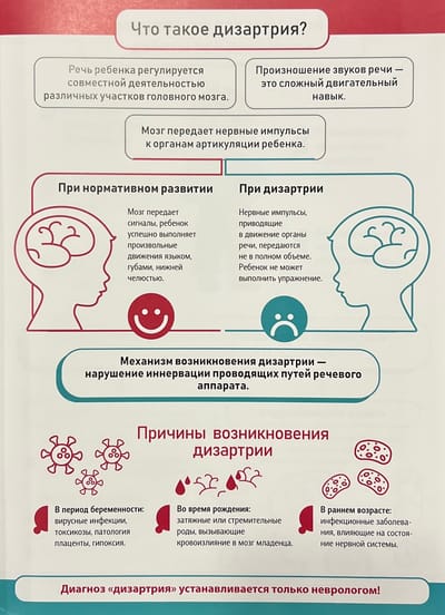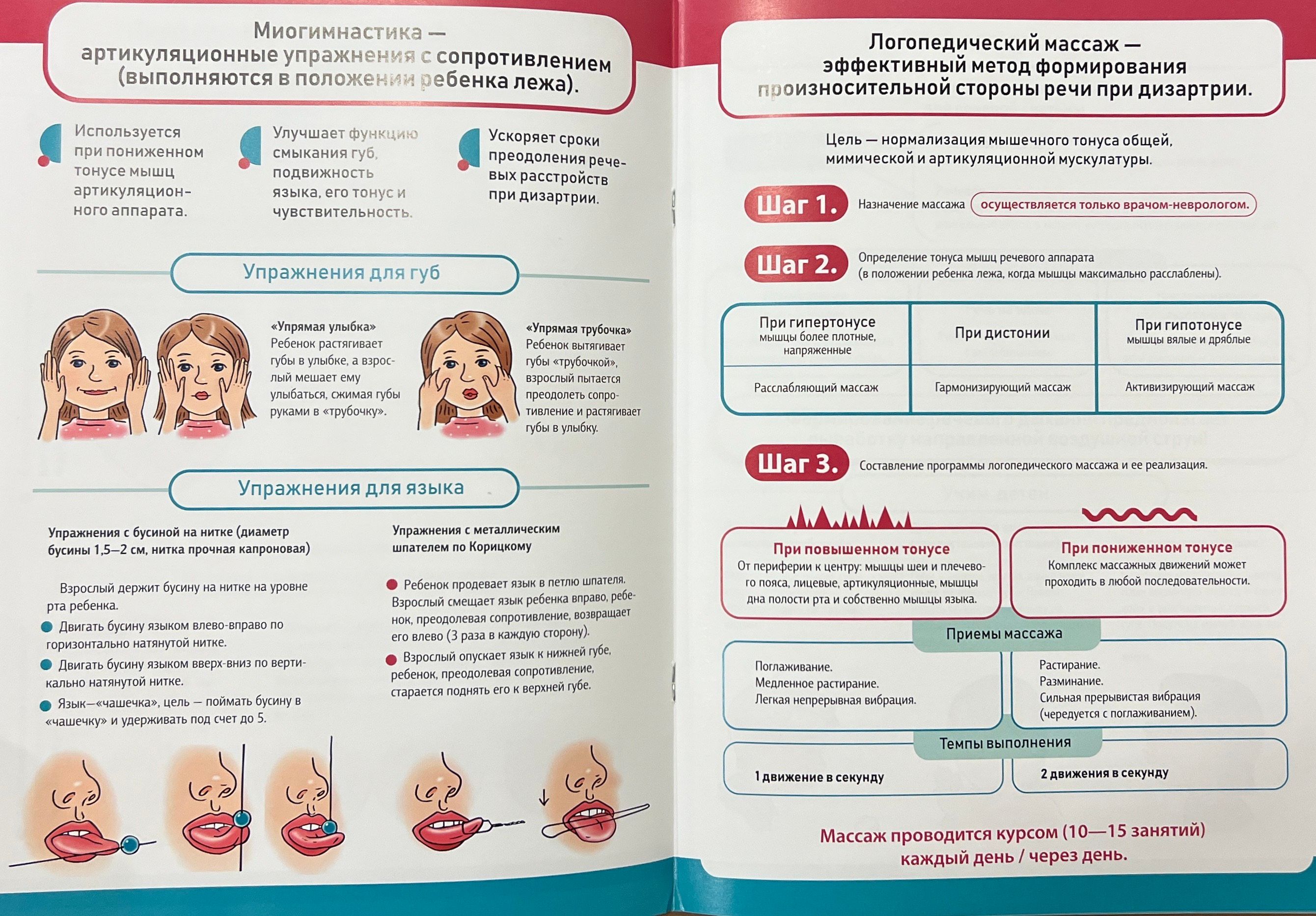 В пособии представлен опыт работы с детьми, имеющими нарушения речи, осложненные дизартрией. В тезисной форме раскрыты механизм и причины возникновения дизартрии, направления коррекционно-логопедической помощи. Особое внимание уделяется методам нормализации мышечного тонуса артикуляционных мышц как ключевого звена в преодолении дизартрии. Пособие будет интересно как начинающим учителям-логопедам, так и специалистам, имеющим опыт работы с детьми-логопатами. Родители ознакомятся с комплексной методикой коррекции дизартрии, приобретут навыки по закреплению правильного звукопроизно-шения в условиях домашних занятий с ребенком.