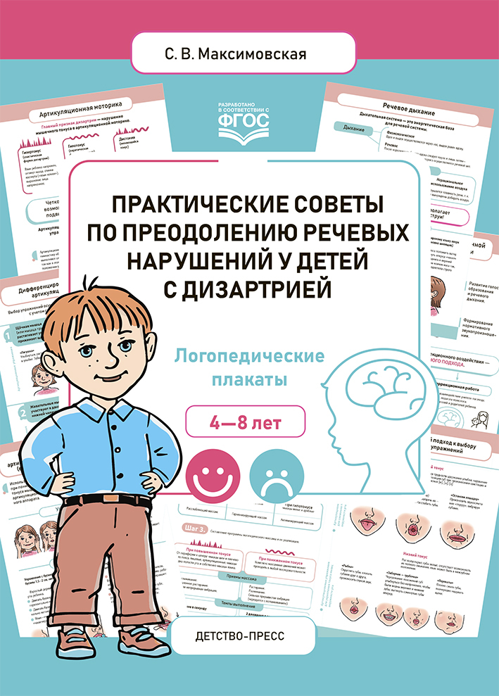 Практические советы по преодолению речевых нарушений у детей с дизартрией. Логопедические плакаты. 4-8 лет