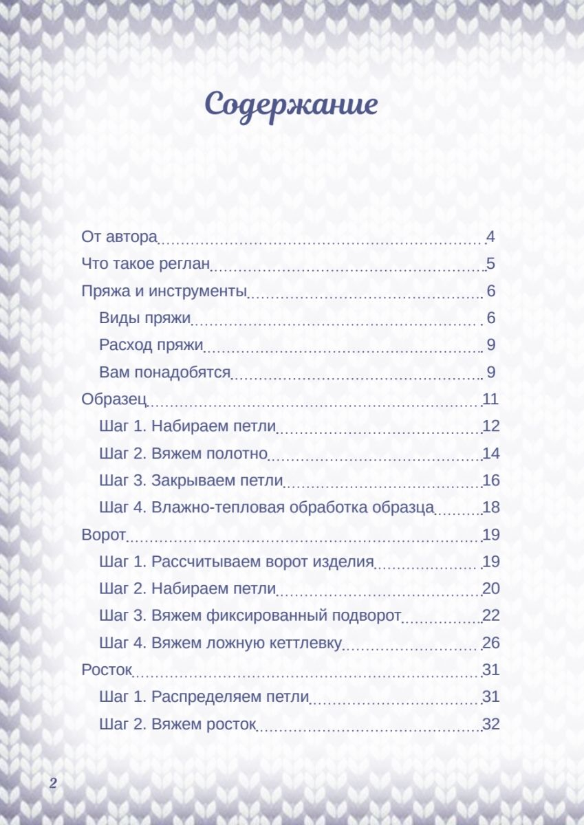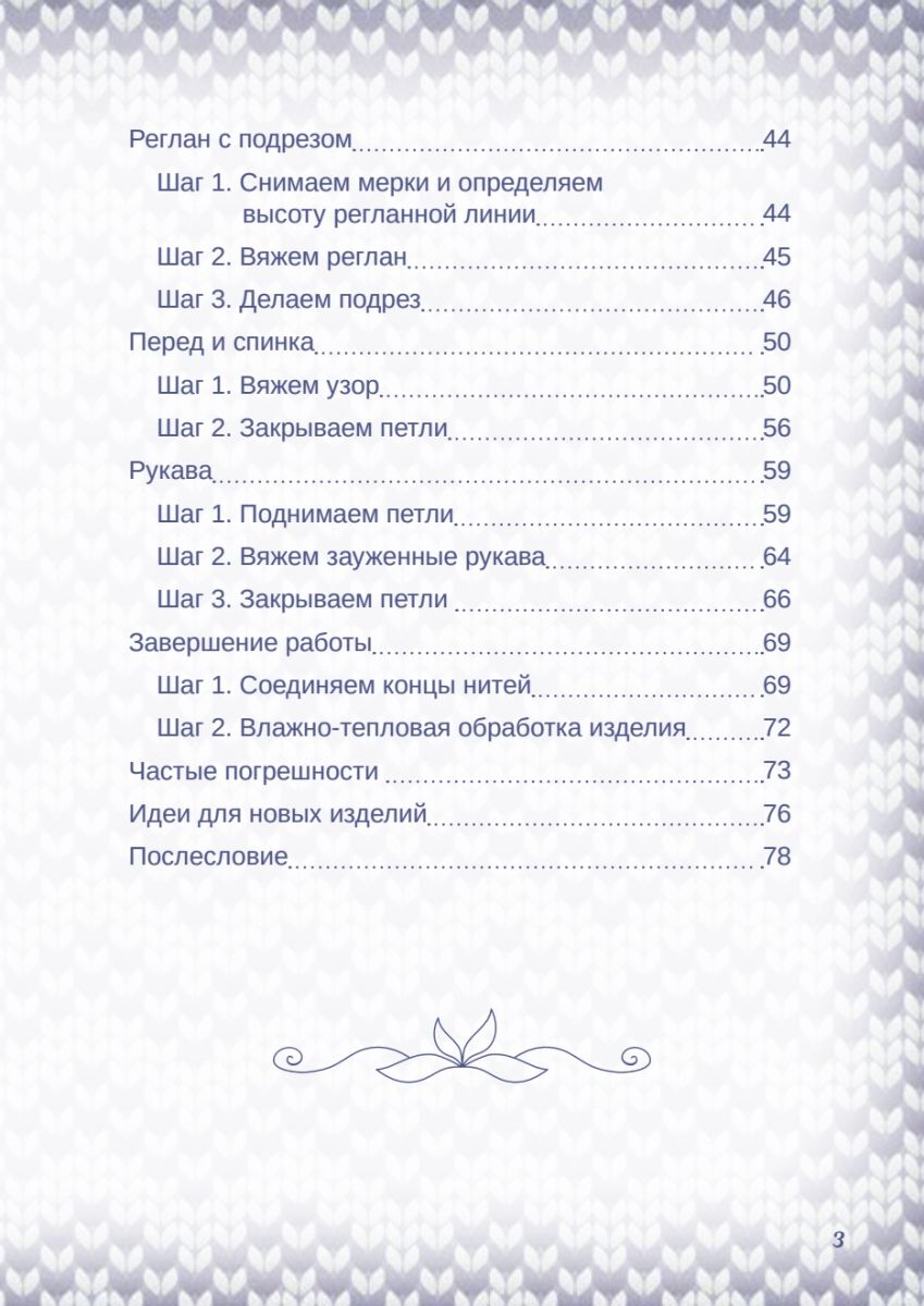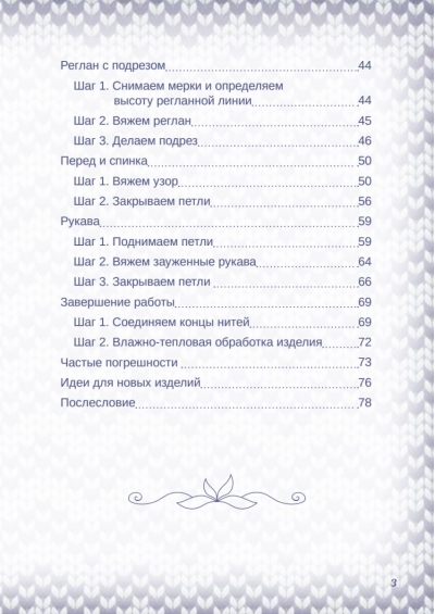 Книга известной вязальщицы Татьяны Курочкиной построена как детальный мастер-класс по упрощенному реглану, раскрывающий подробный алгоритм действий, порядок расчетов и личные секреты мастерства автора.