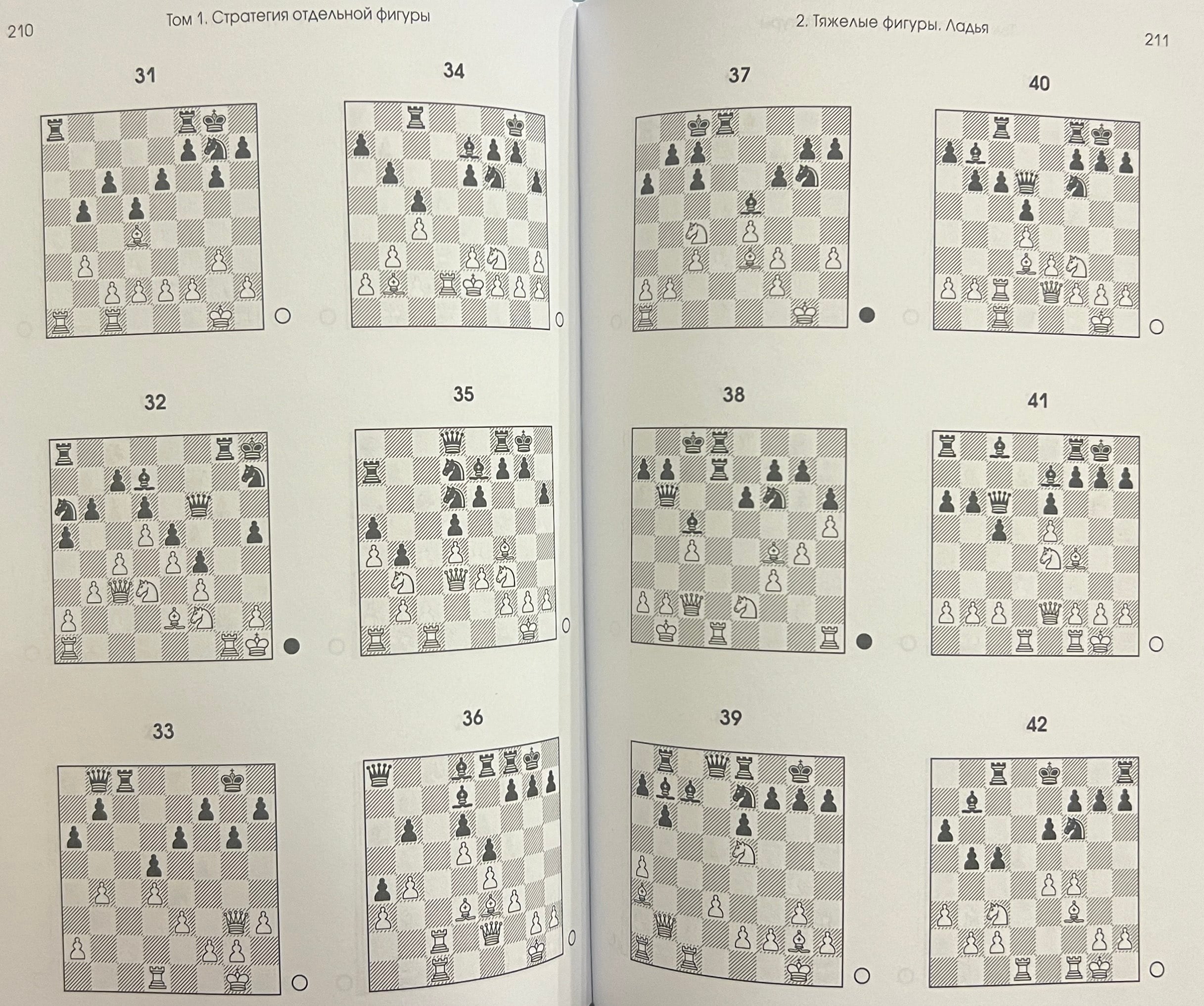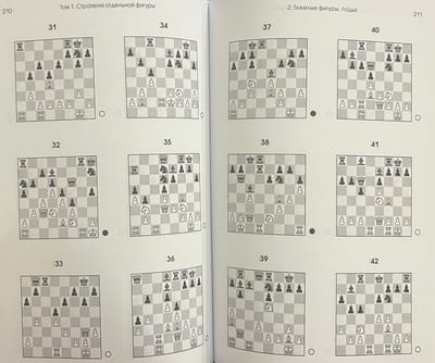 В книге содержится множество примеров, в которых надо найти нужные ходы в партии или решение для заданной позиции.