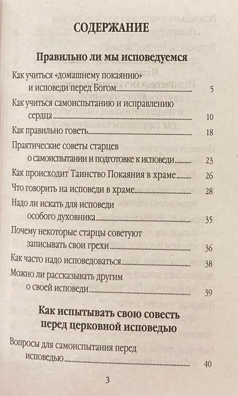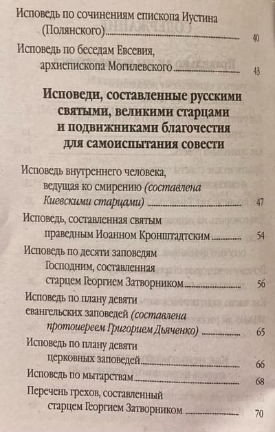 Практические советы русских святых, старцев, подвижников благочестия о подготовке к исповеди Перечень грехов с их объяснением. Содержание: Правильно ли мы исповедуемся Как испытывать свою совесть перед церковной исповедью Исповеди, составленные русскими святыми, великими старцами и подвижниками благочестия для самоиспытания совести