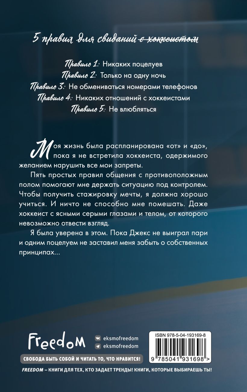 Пять простых правил общения с противоположным полом помогают мне держать ситуацию под контролем. Чтобы получить стажировку мечты, я должна хорошо учиться. И ничто не способно мне помешать… Даже хоккеист с ясными серыми глазами и телом, от которого невозможно отвести взгляд. Я была уверена в этом. Пока Джекс не выиграл пари и одним поцелуем не заставил меня забыть о собственных принципах…
