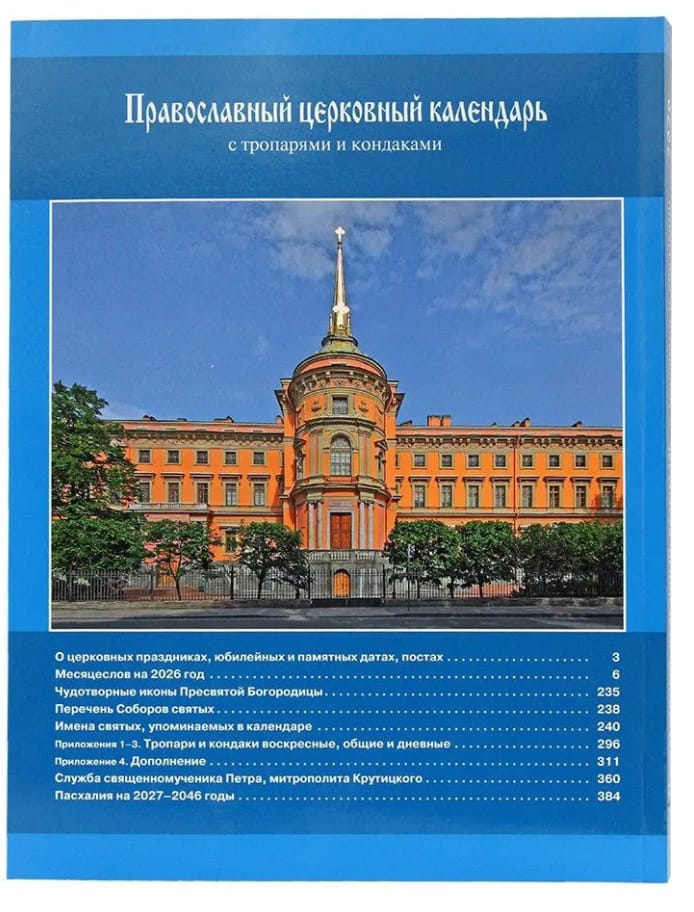 Православный церковный календарь с тропарями и кондаками на 2026 год