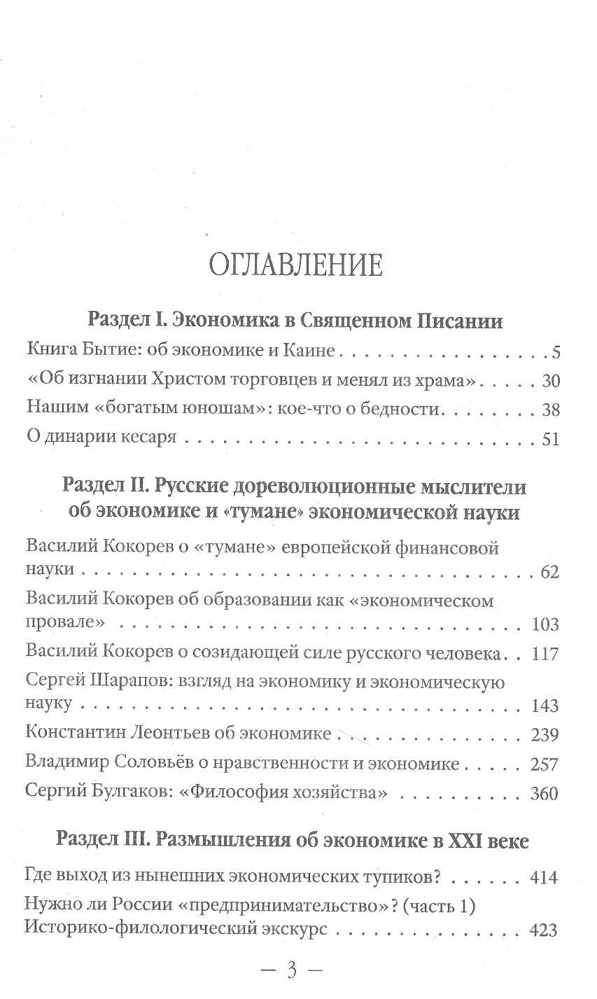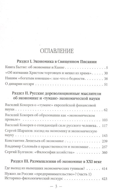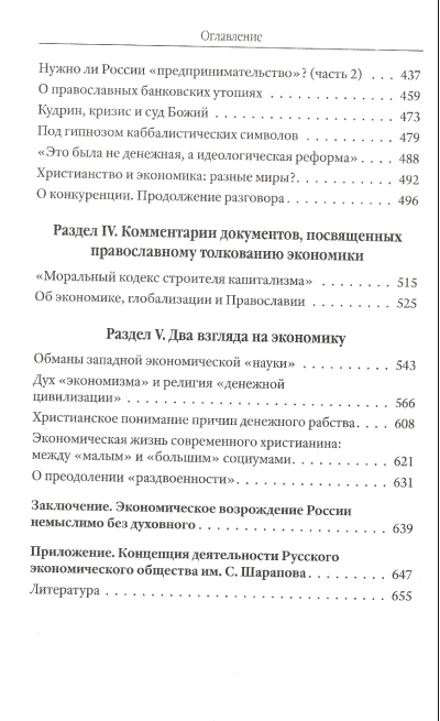 Собраны работы самых разных жанров: толкования библейских сюжетов, очерки русской экономической мысли дореволюционного времени, публицистические размышления об экономике России и мира нашего времени, комментарии на документы, богословские и философские эссе о духовной природе экономики.