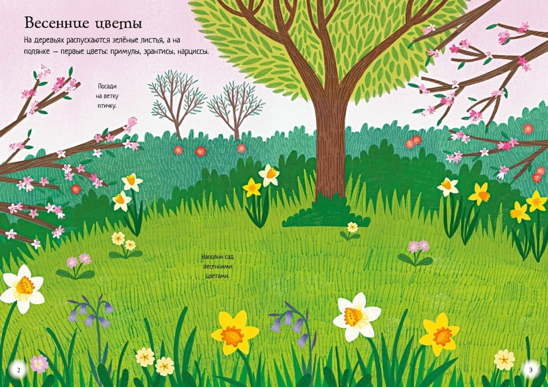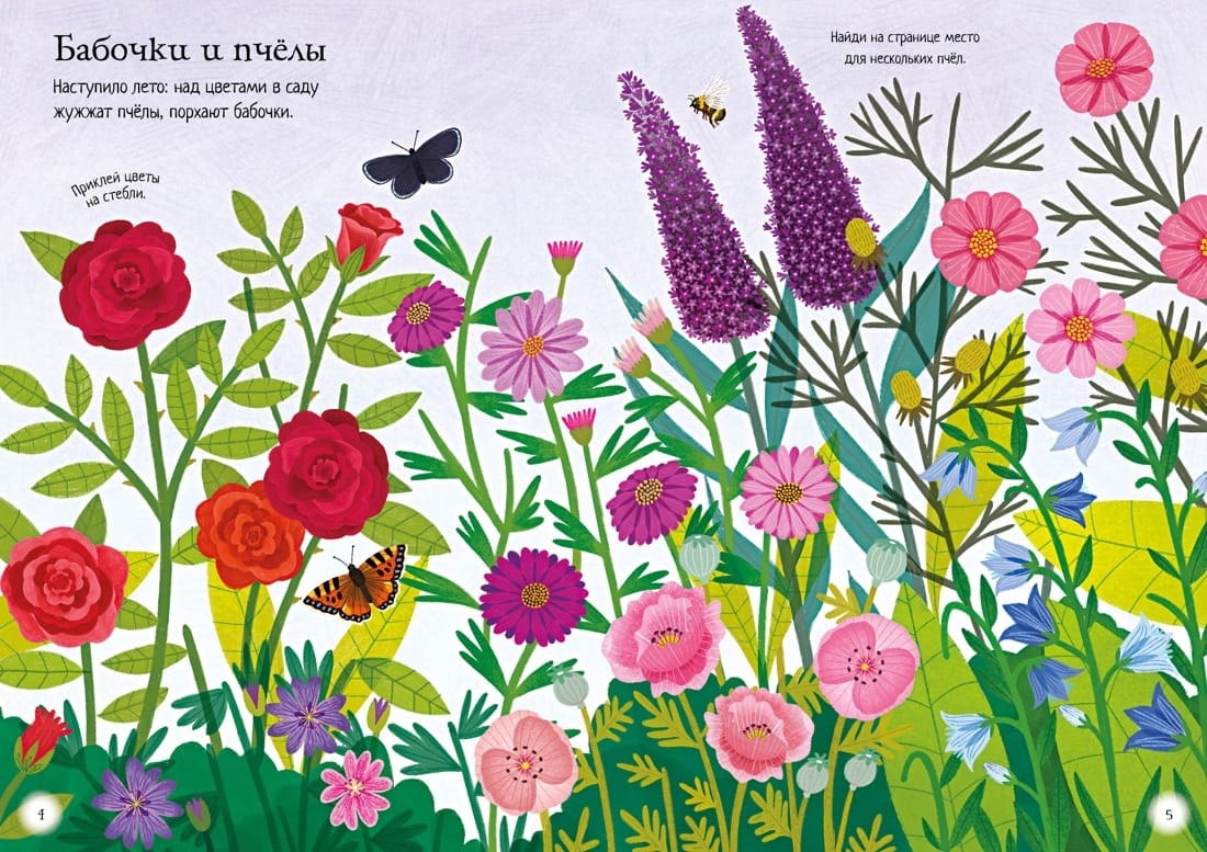 Наполни цветами Альпийский луг и сады, найди место для животных на поляне с колокольчиками, размести летающих среди тропических растений колибри, а также посади в горшочки маргаритки и розы на цветочном рынке. Читаем и играем! Развиваем внимание, воображение, мелкую моторику, художественный вкус и эмоциональный интеллект.