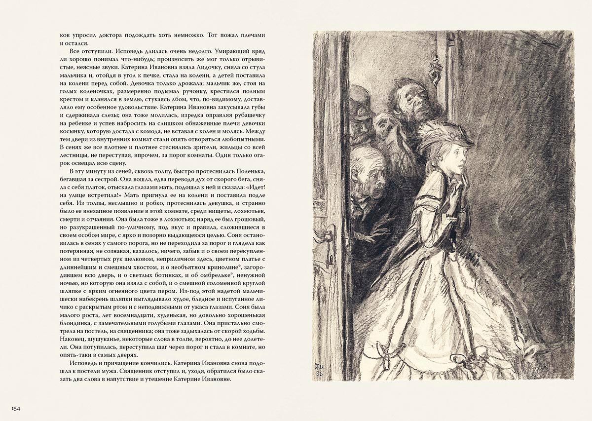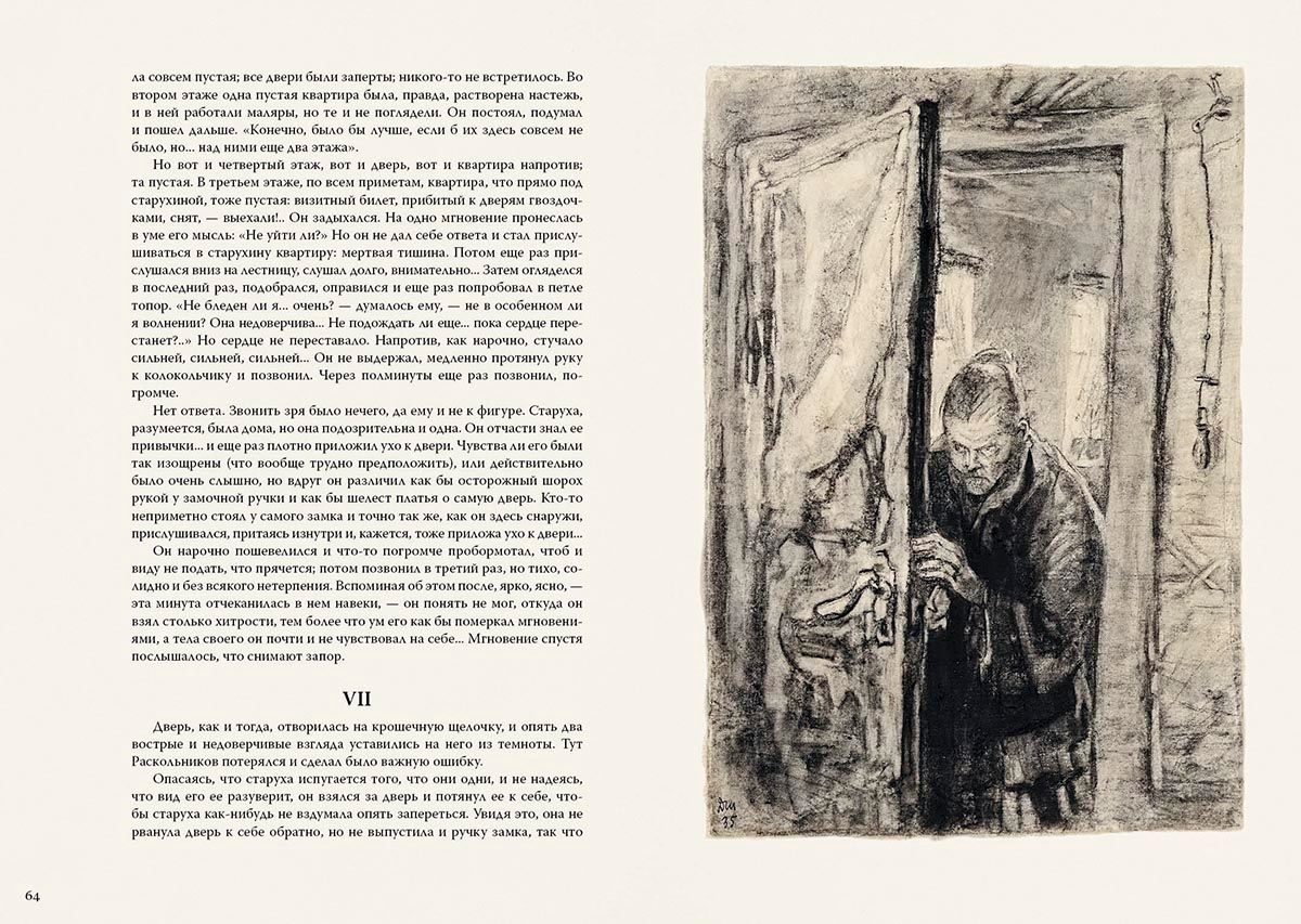 Роман "Преступление и наказание" - образец психологической и социально-философской прозы. Главный герой студент Родион Раскольников замышляет убийство и грабеж. Мотивы его, с одной стороны, ясны: он беден и остро нуждается в деньгах; с другой стороны, не жажда обогащения им движет, а мысль об избранности и превосходстве одних людей над другими. Возможно ли внутренне оправдать преступление и какое наказание ждет того, кто решился преступить через общественные и моральные законы - эти вопросы создают драматургию романа и держат читателя в напряжении до финала. Выразительные иллюстрации к роману создал художник Дементий Шмаринов, мастер передачи сложнейших психологических характеристик героев.