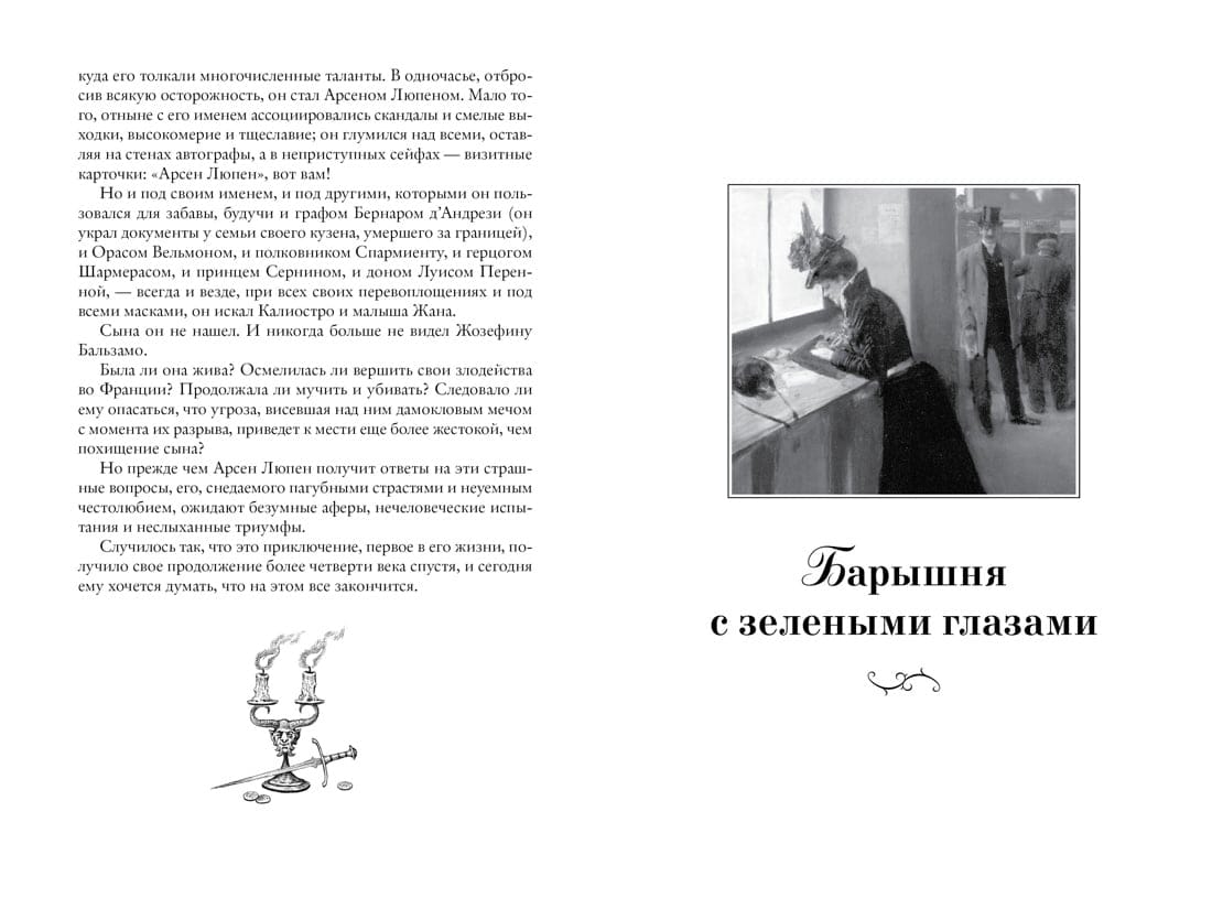 Книги французского писателя Мориса Леблана о приключениях Арсена Люпена раскупались при жизни автора огромными тиражами, превышающими тиражи книг самого Конан Дойла. Арсен Люпен — человек, разыскиваемый всеми полициями мира; больше пяти сотен знаменитых краж, более сотни приговоров! Неуловимый грабитель, о подвигах которого трубят все газеты. И в то же время — защитник угнетенных и обездоленных, готовый прийти на помощь и раскрыть тайну, проникнуть в которую оказался бессилен закон. В настоящее издание вошли романы, повести и рассказы о приключениях Арсена Люпена, скрывающегося под разными личинами и масками: «Графиня Калиостро», «Барышня с зелеными глазами», «Зуб Эркюля Петигри», «Человек в овчинной бекеше» и «Агентство «Барнетт и Ко». Роман «Графиня Калиостро» представлен в новом переводе, остальные произведения выходят на русском языке впервые.