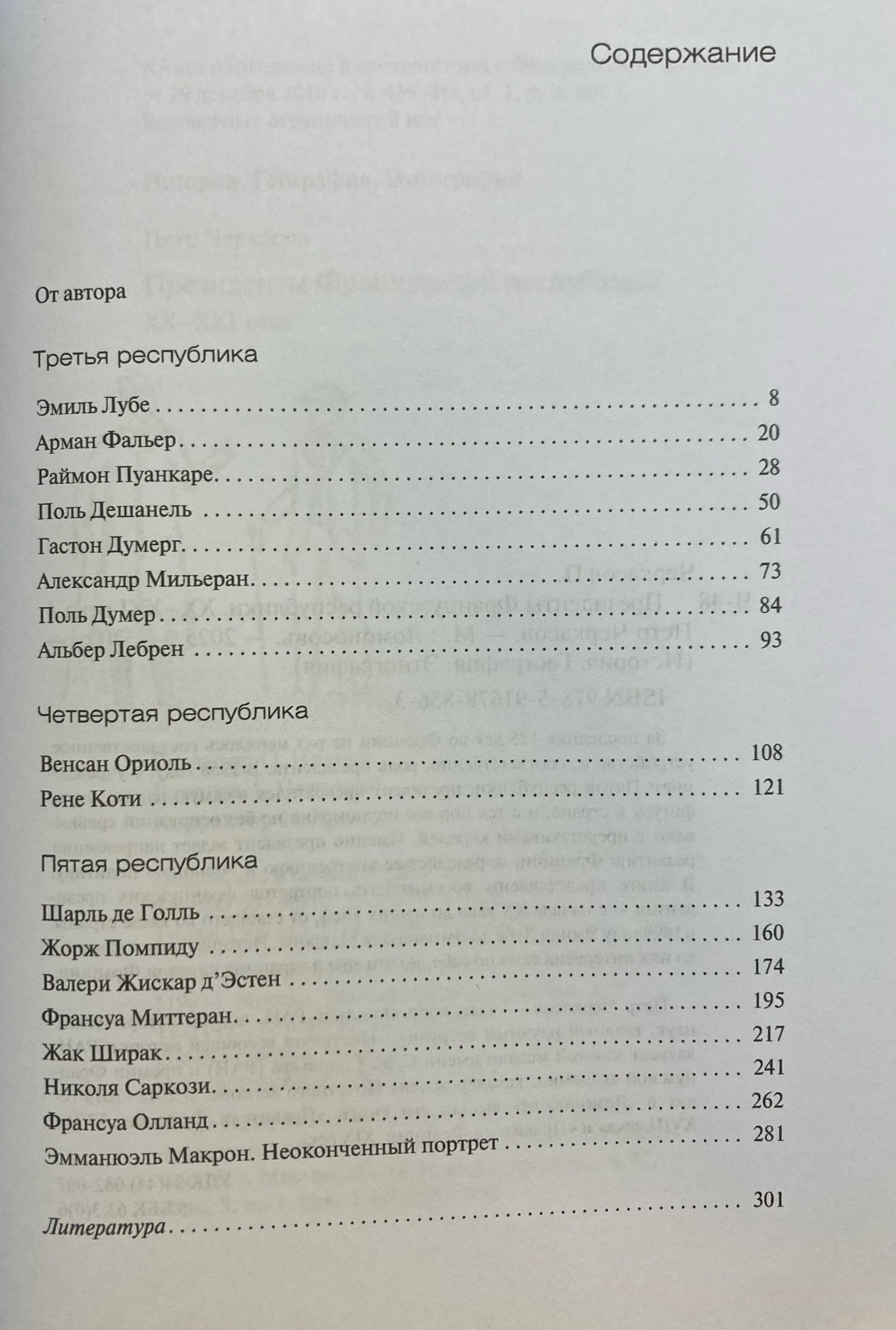 За последние 125 лет во Франции не раз менялось государственное устройство и, соответственно, роль президента. В 1958 году, с учреждением Пятой республики, президент превратился в самую влиятельную фигуру в стране, и с тех пор его полномочия не без оснований сравнивают с прерогативами королей. Именно президент задает направление развитию Франции, определяет ее внутреннюю и внешнюю политику. В книге представлены восемнадцать портретов французских президентов — с начала XX века до наших дней, от ставшего во главе страны в 1899 году Эмиля Лубе до Эмманюэля Макрона. История жизни каждого из них интересна сама по себе, но это еще и страница истории Франции.